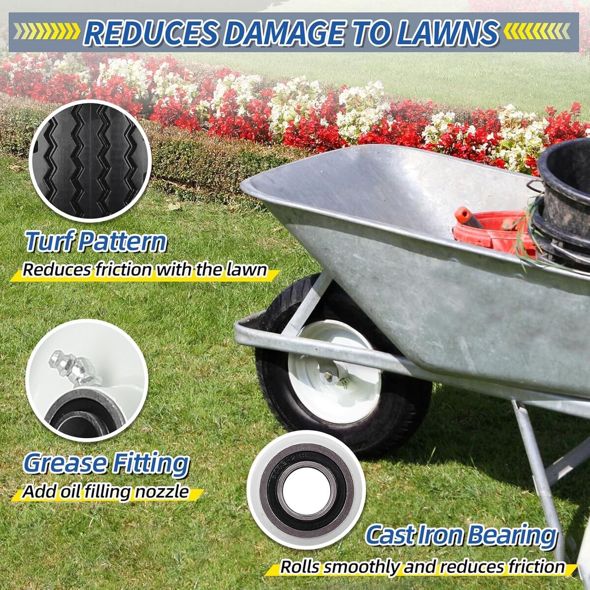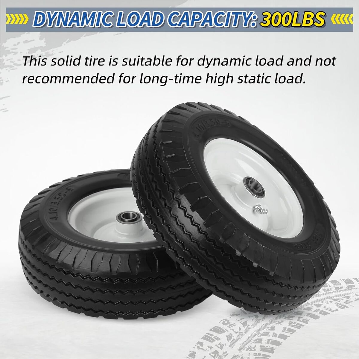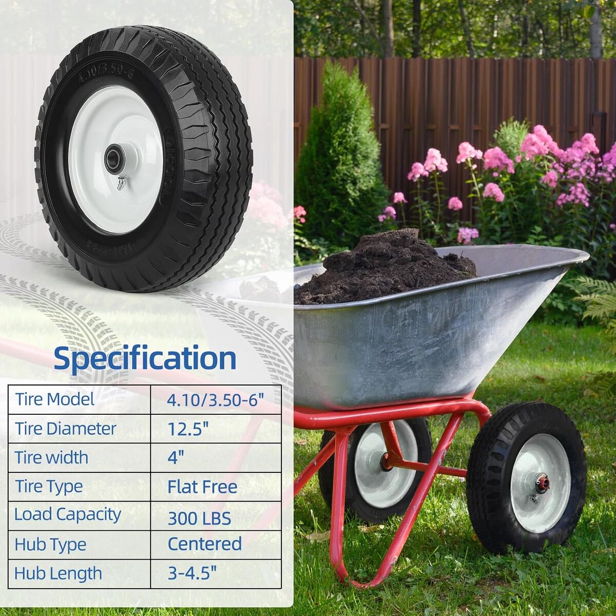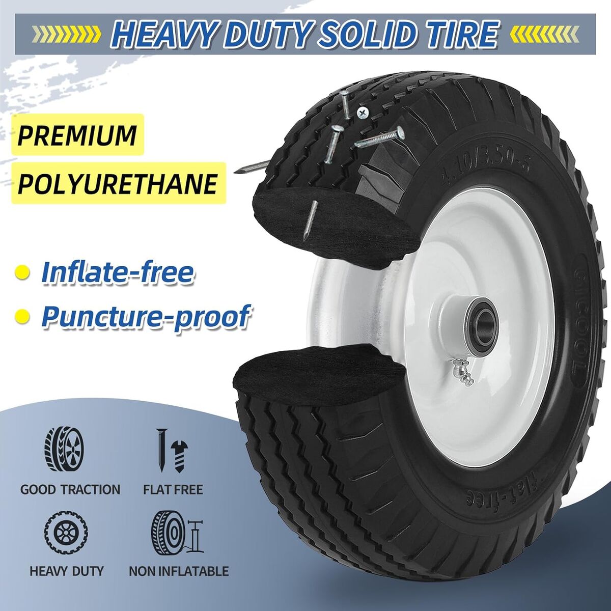 4.10/3.50-6 Flat Free Tire and Wheel, with 3"-3.5''-4.0''-4.5'' Centered Hub, and 3/4" & 5/8" Bearings, Replacement for Lawn Mower, Hand Truck/All Purpose Utility Tire on Wheel, (2 Pack)