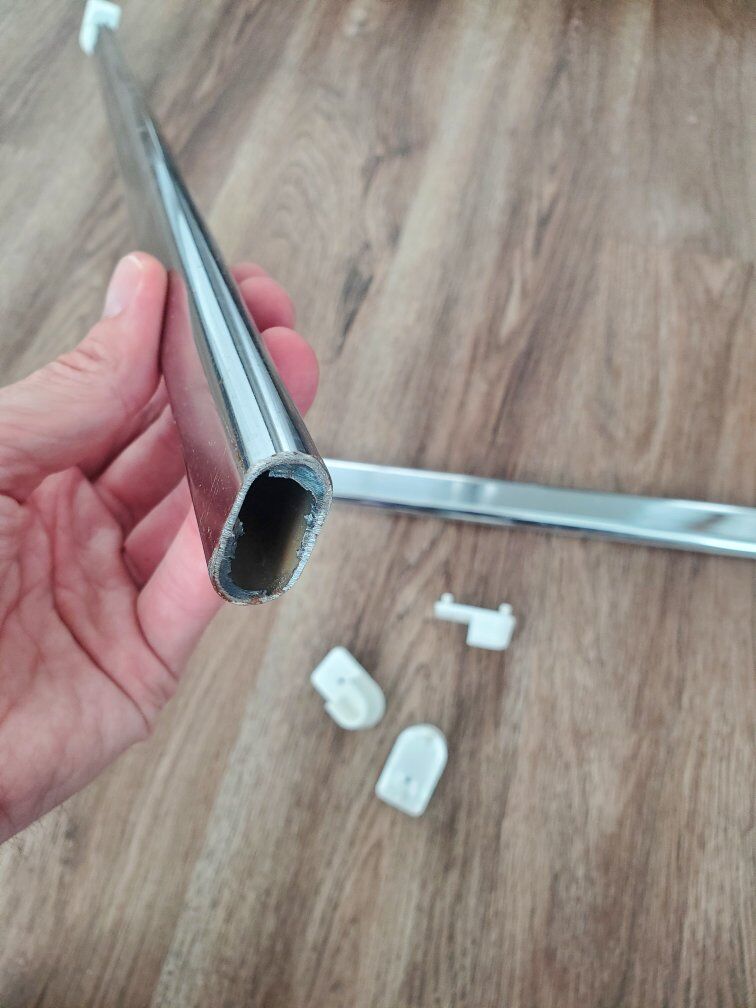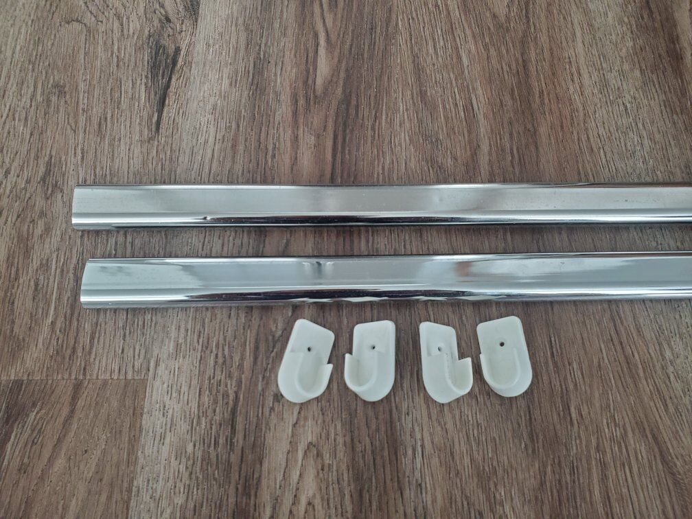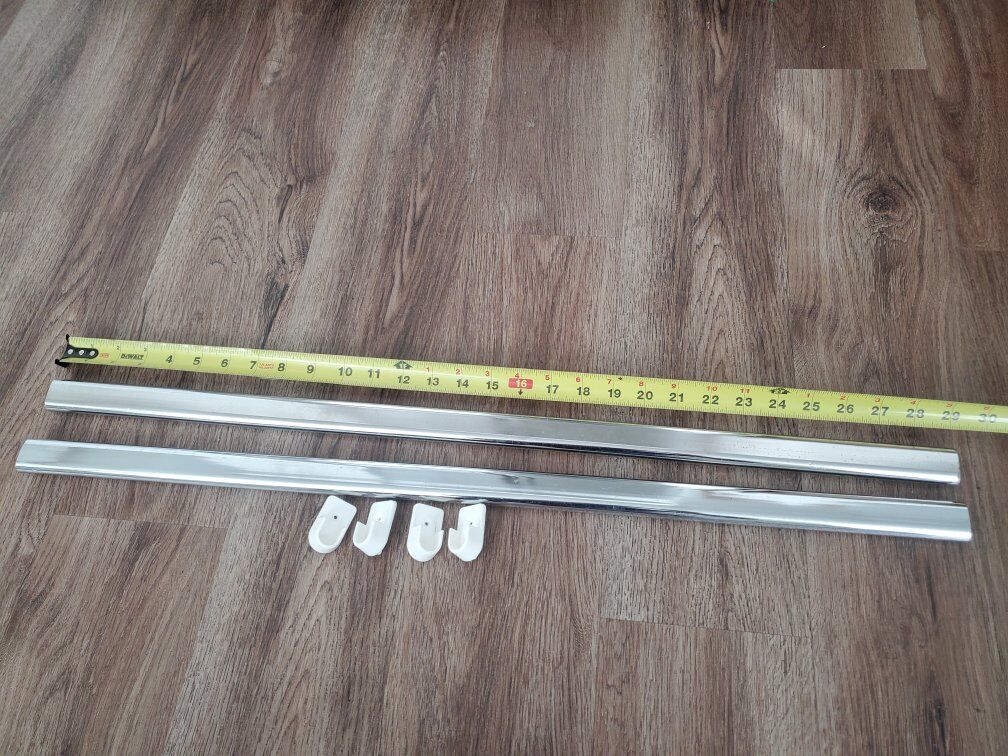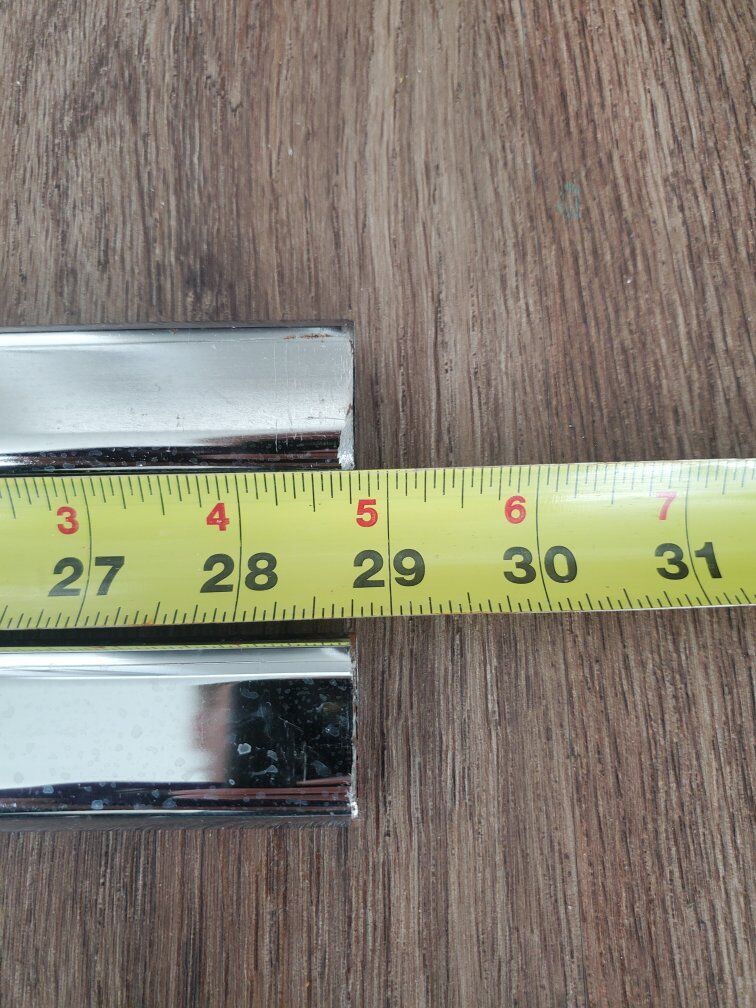 Have two chrome clothes rods that attach to custom melamine closet organizer shelving. Length is approximately 29 inches. Can be cut shorter.