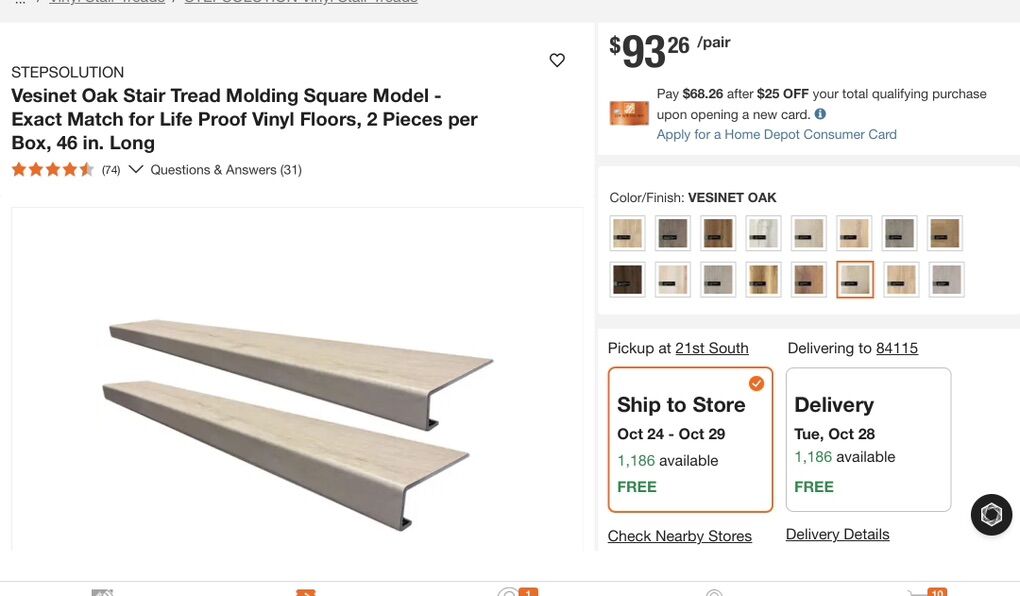 ApplePayStepSolution Vinyl Stair Tread – Vesinet Oak (2-Pack, 46”) | NEW $50 Pickup in East Bench / Salt Lake City area