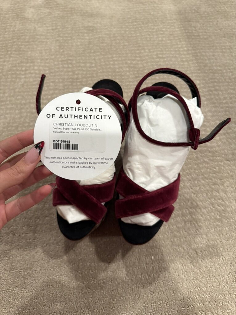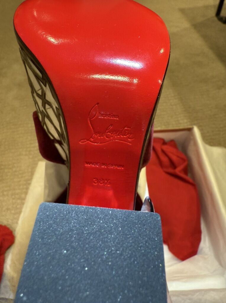 VenmoVintage Velvet Super Yaz Pearl 160 Sandals 38 1/2 Galata Black heels never worn, rare Christian Louboutins.