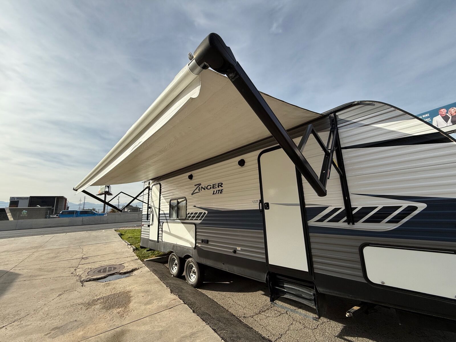 2019 Crossroads Zinger 249RK travel trailer that we got in on trade is equipped with many options for a great price. This bumper pull will sleep up to 6 with a fold down bed in front, dinette and RV Queen bed in he front. Also has a large bathroom with shower with skylight. Sits around 28ft in length and over all width is 96 in. Good condition inside and outside for the year. Has automatic patio awning & outside fridge & grill. Priced to move fast so don’t miss out on this one. Come down and check it out. Contact us to schedule a walkthrough today.