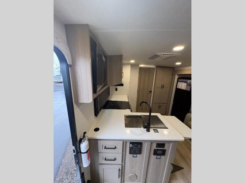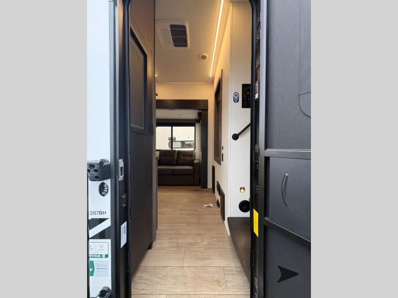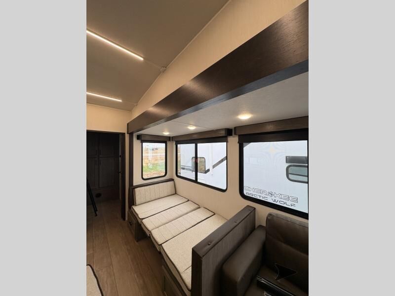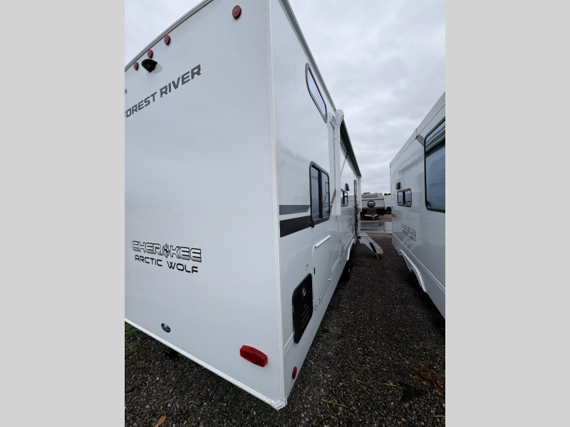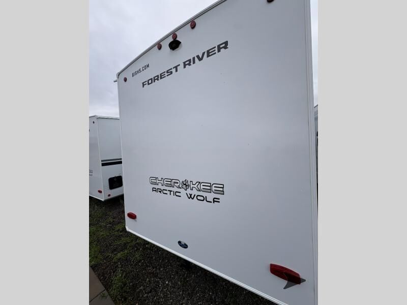 Forest River Cherokee Arctic Wolf fifth wheel 287BH highlights: Private Bunkhouse Tri-Fold Sofa U-Shaped Dinette 20' Awning Walk-In Pantry 100W Solar Panel Let the fun times begin with the purchase of this Cherokee Arctic Wolf fifth wheel! You'll have loads of sleeping space for ten tired travelers with the front private bedroom, rear private bunkhouse, U-shaped dinette, and tri-fold sofa. You'll also have excellent storage space with the bunkhouse wardrobe, large walk-in pantry next to the entry door, and theoutside storage areas. The large slide in the main living area offers more living space, and the fireplace will make it feel more like home. You'll have the very best time tackling outdoor adventures with the Forest River Cherokee Arctic Wolf fifth wheel! Each model has been constructed with a “ToughBend” rigid skirt metal design, Leash Latch pet safety technology, an outside shower with hot/cold water, and a 1x engineered wood “SuperTruss” roof structure with 3/8" decking for added durability. There is also an automatic leveling and stabilization system, plus 12V heat pads on all holding tanks with help withstand colder temperatures. Inside, you'll love the solid surface kitchen countertops, along with a carpetless floor design, and fully adjustable, slow rise, blackout roller shades. The on-demand tankless hot water heater will provide endless hot water and the central A/C unit with Quick Cool will ensure your comfort during those hot summer camping months. There are many more stand-out features found on these fifth wheels; check them out!
