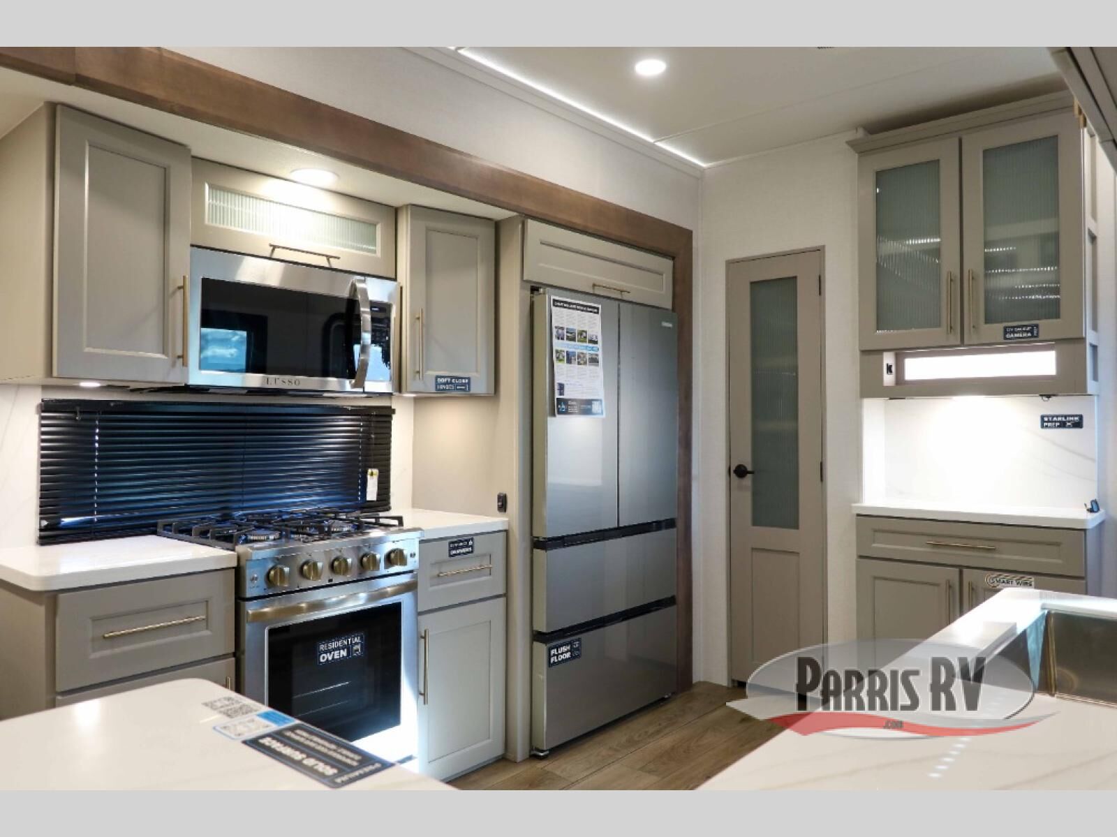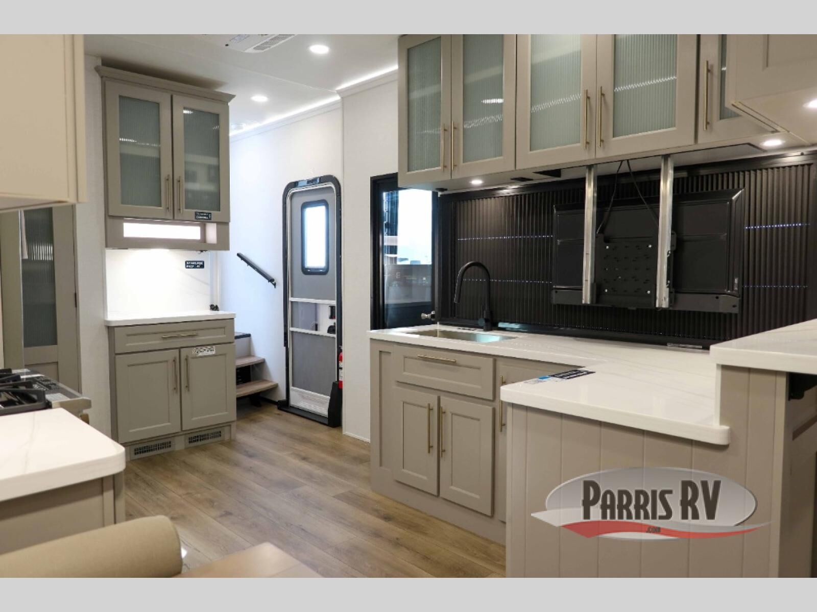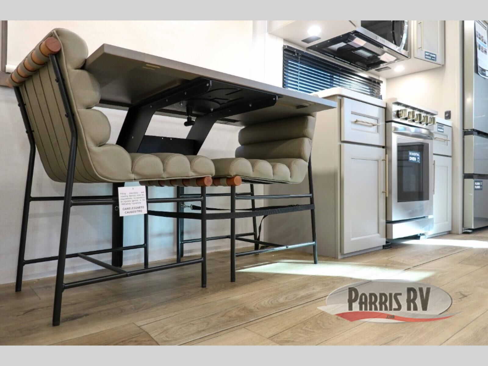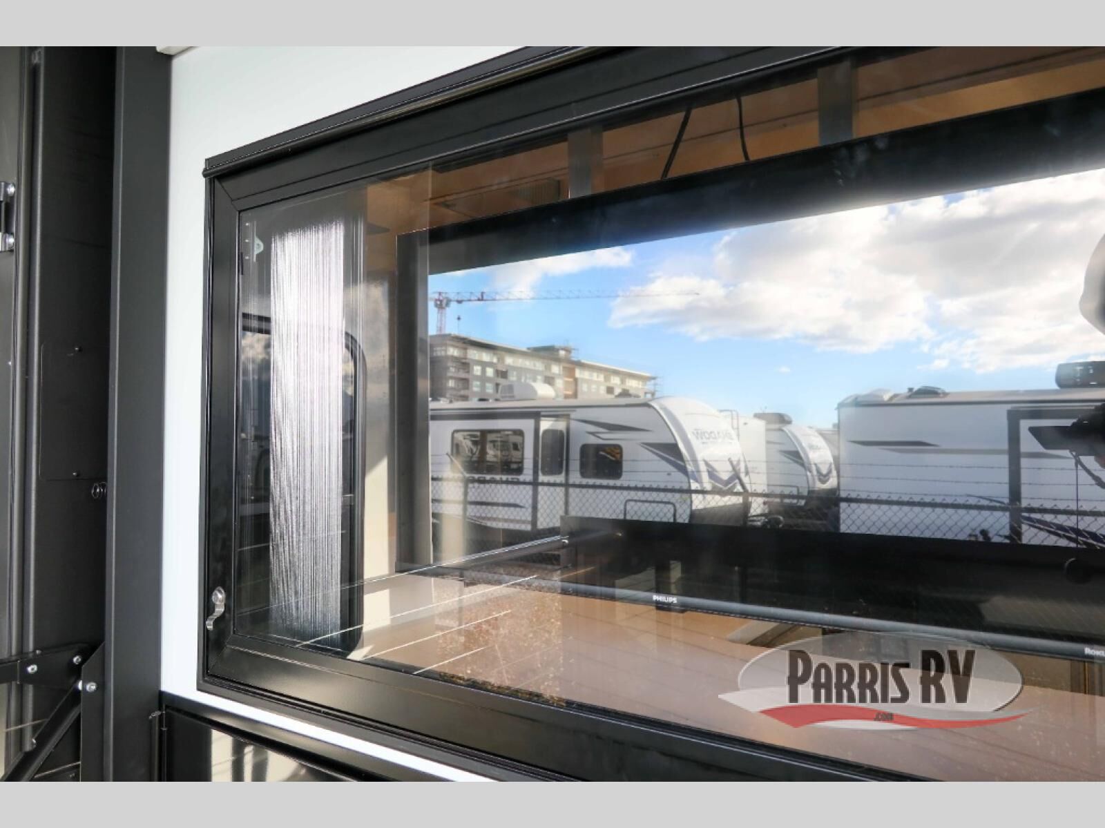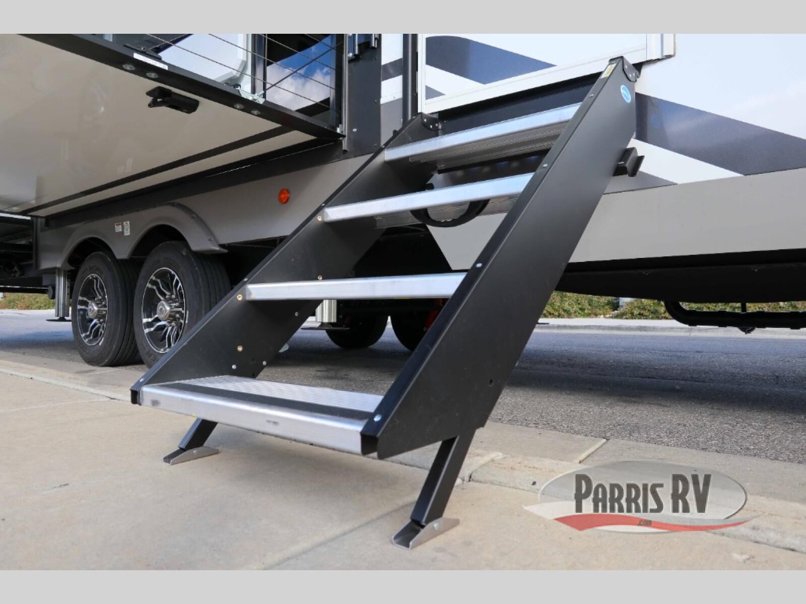 You will fall in love with this unit's slide patio with picture window, the perfect spot to take in the breathtaking views. Enjoy outdoor cooking with the countertop prep area and pull-out grill, while the drop-down TV provides entertainment for all. Inside, rear living area features two sleeper sofas, perfect for lounging and relaxing. Overhead cabinets provide ample storage, while the 50" class smart TV offers endless entertainment options. Gather around the turn table dinette for meals or socializing. The kitchen is fully equipped with a microwave, sink, refrigerator, pantry, and hutch, making meal preparation and storage a breeze. Also this unit has a full bathroom and a cozy front bedroom which boast a king bed, ample closet, a TV, and so much more!