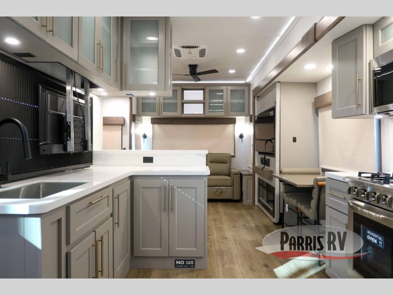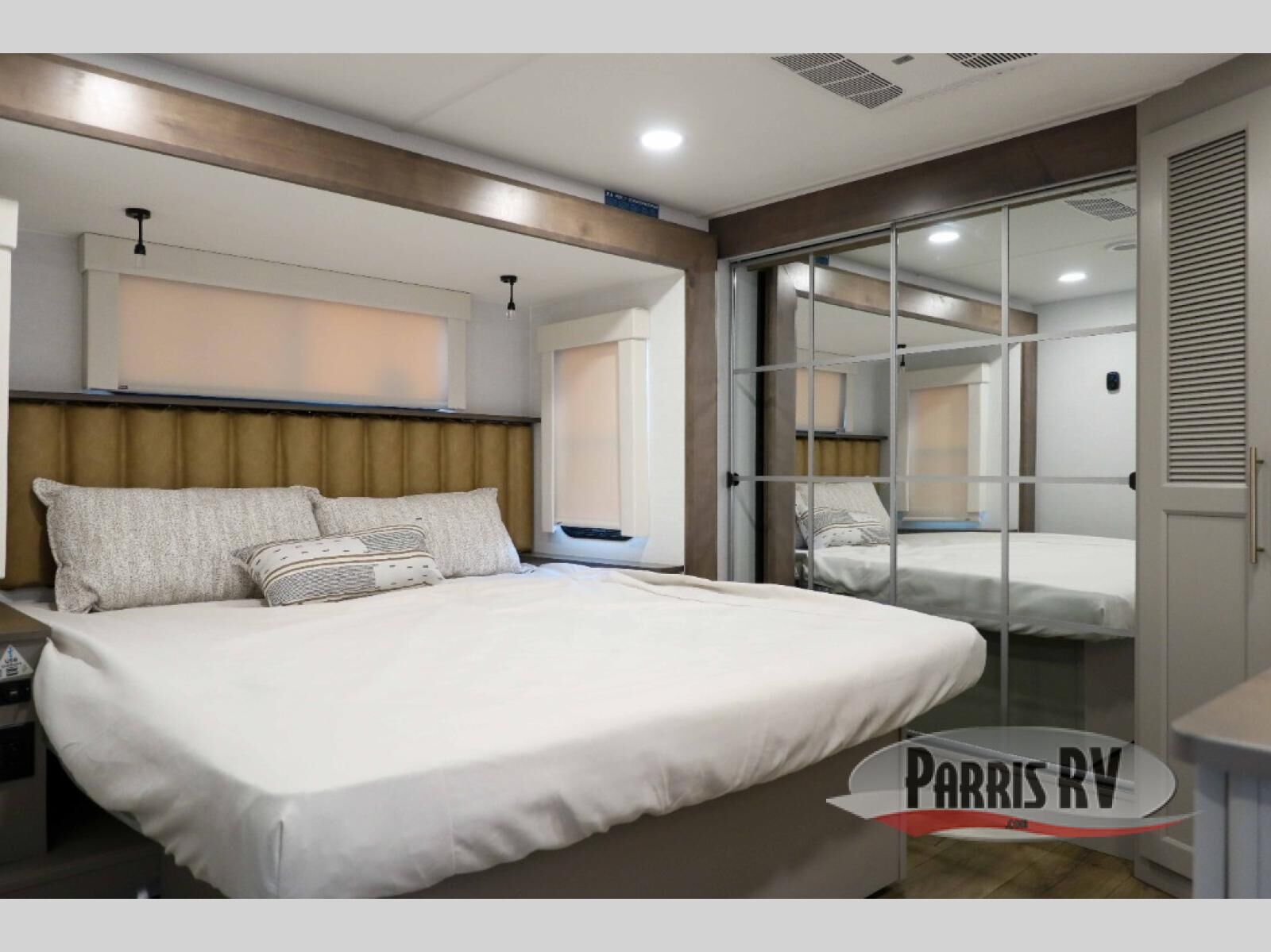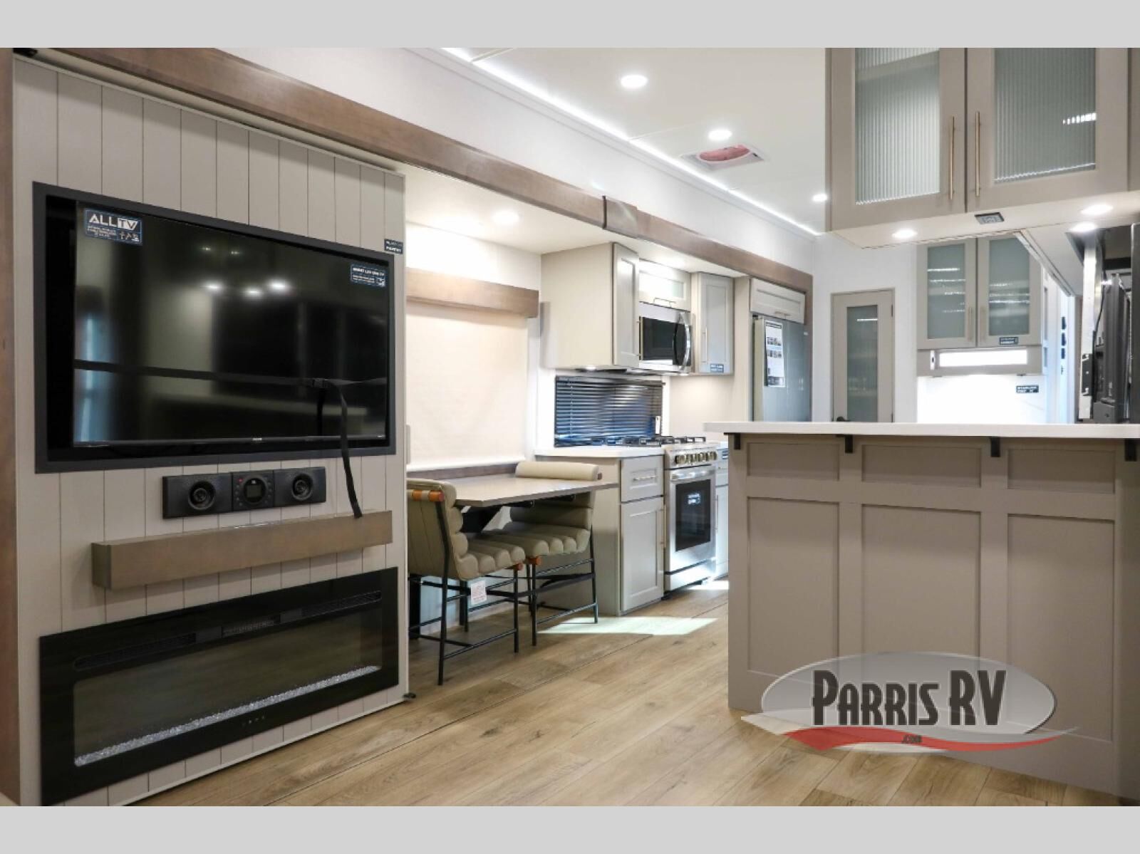 The Paradigm fifth wheels by Alliance RV are functional, high-quality, and luxurious for an unforgettable camping experience. There are three A/C units and a 40K BTU furnace to keep you comfortable year around, and you'll appreciate additional convenient amenities, like the all-in-one enclosed/heated utility center and the color coded and numbered wiring. A Helux Series coil spring pin box comes standard for hassle-free towing, along with Curt 8,000 lb. axles. You'll love the kitchen with its LG solid surface countertops and Lusso range, plus there is LED motion lighting in the pantry and a Maxx fan with a rain sensor to keep everything fresh when making dinner. Each model also includes an HD Smart TV in the living room and bedroom. And of course there are a variety of options you can choose from to further customize your fifth wheel; dual pane windows, Super Solar Plus, slide out awning toppers, and generator prep or a generator to name a few!