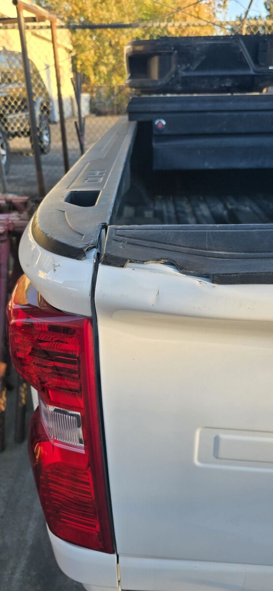 This 8' Bed came off a 2021 Silverado 3500 with roughly 40k miles of use. slight damage to rear tailgate. Picture of damage included. Comes with Rear tailights, Rear Bumper and complete tailgate with reverse camera