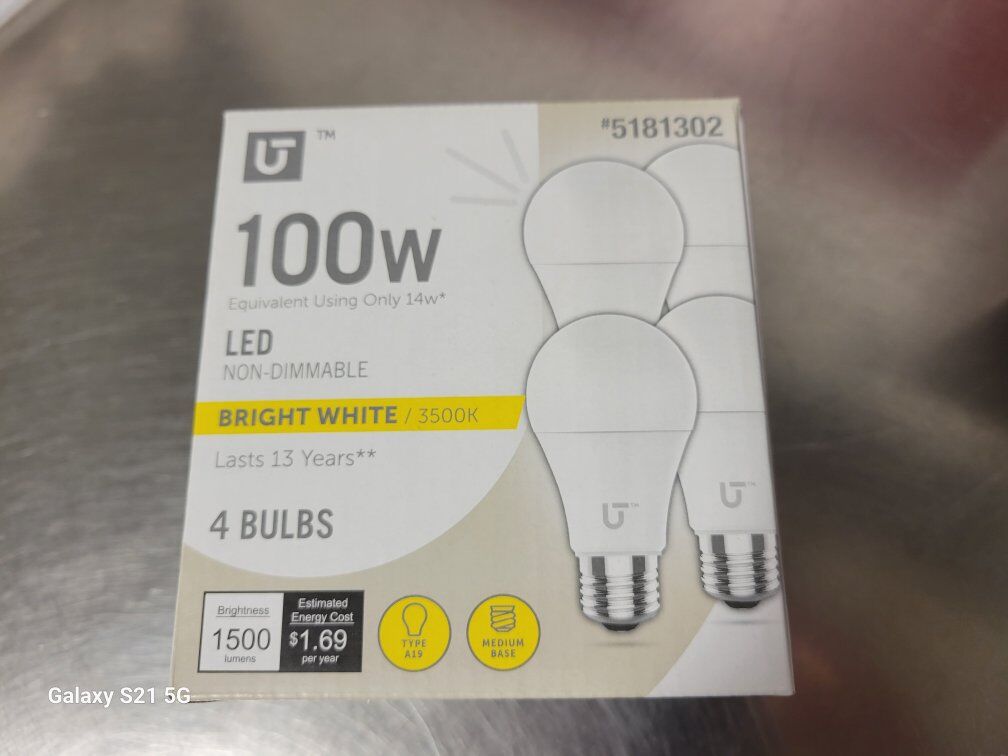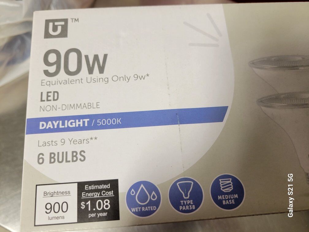 I have three new packages of Utilitech LED 100W light bulbs and 1 new package of Floodlight LED 90W bulbs. selling as a lot. Item in Provo cash and pick up only, sry no venmo, please see my other listings