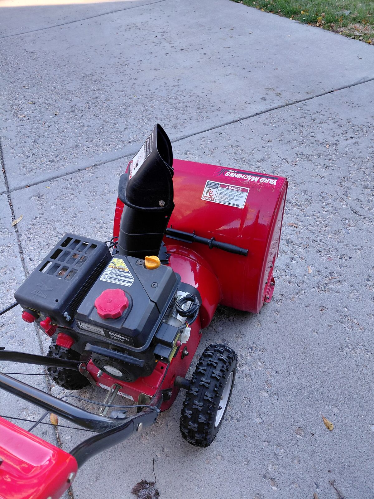 VenmoSnow Blower 24" Yard Machine in great condition, well maintained. It has an electric start and a pull start. 6 forward speeds and 2 reverse speeds.