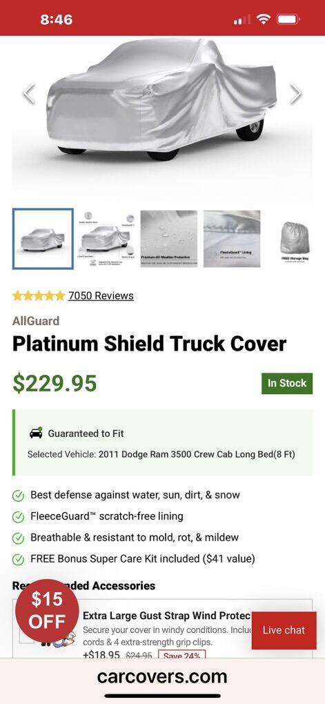 I bought this cover for my 2011 Dodge Ram 3500 Crew Cab Long Bed truck and ended up never using it. The cover is brand new in its storage bag. Purchased from carcovers.com for $230.
