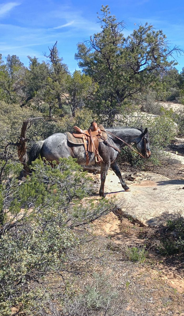 She has plenty of energy for the asking and has a good stop. She could continue on in many areas. I've been trail riding on her since I've had her home and she has been very good to ride. Easy to handle and quick to respond. She is a very nice mare. I just have too many right now and she has so much potential, she is just too good of a prospect to let her sit in the corral. She would also make a nice broodmare prospect.