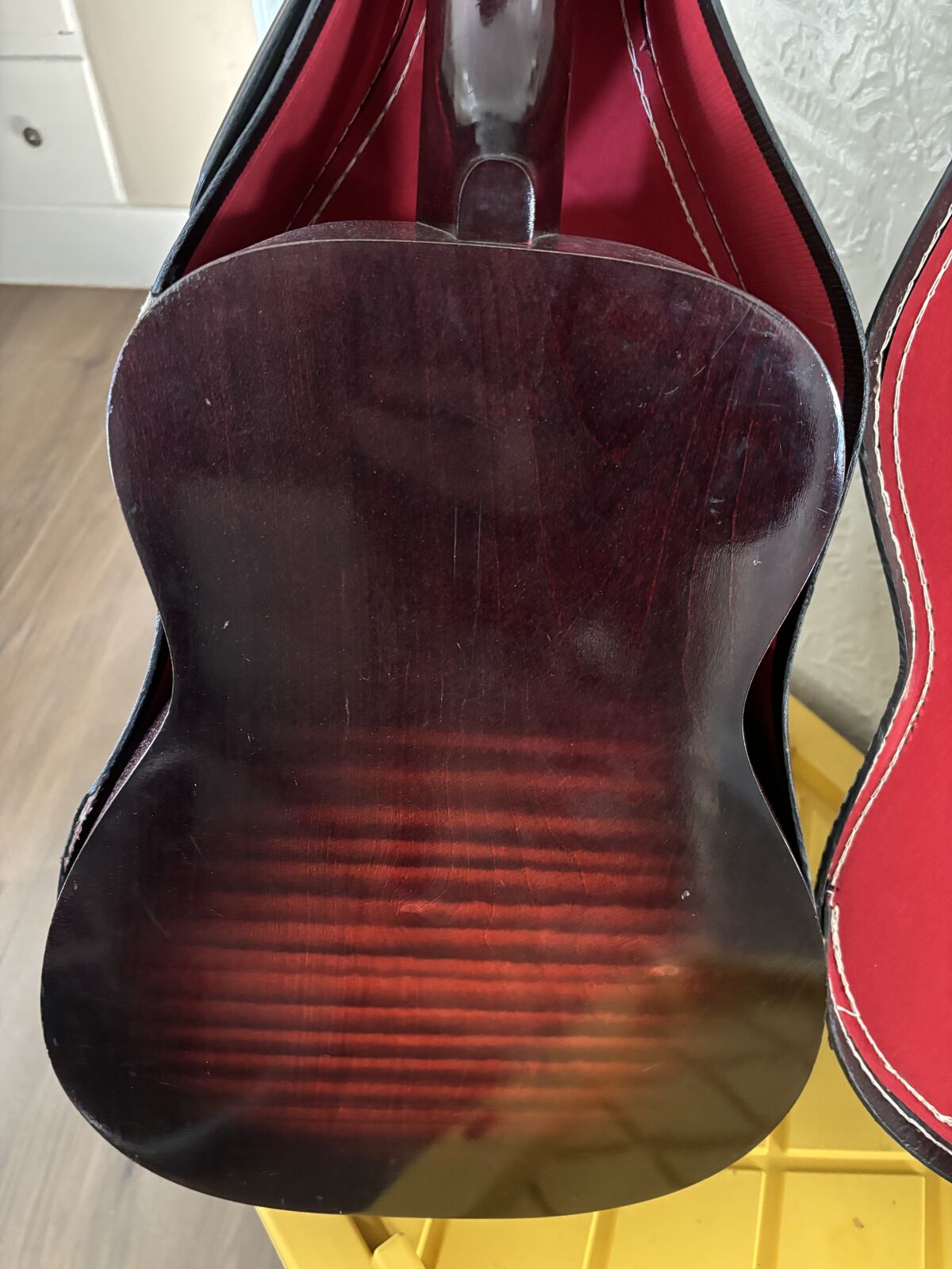 No cracks or no damage, just needs restring.