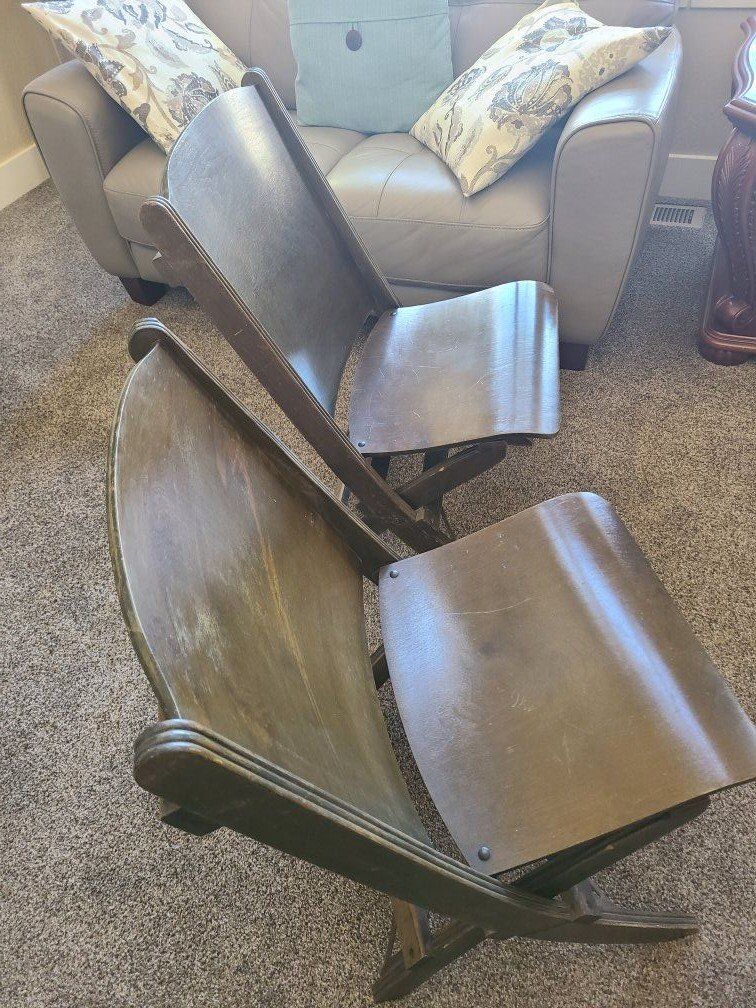 VenmoTwo beautiful antique theater chairs. Very nice wood. Excellent condition.