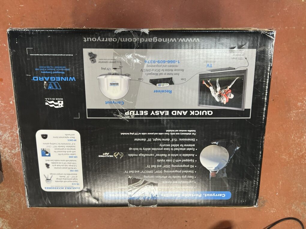 The Winegard Carryout automatic portable satellite dish is a true fully automatic satellite antenna. Simply turn on the Carryout and it will automatically find the satellites for you. No remote, no controls... just turn it on! When you are in a hurry or just don't want to miss that important game, this is the satellite for you!
