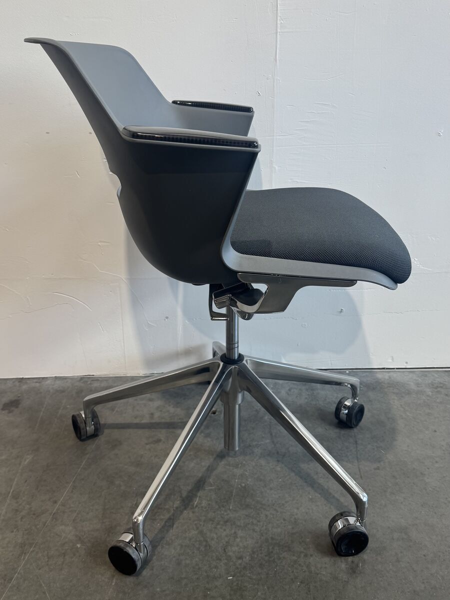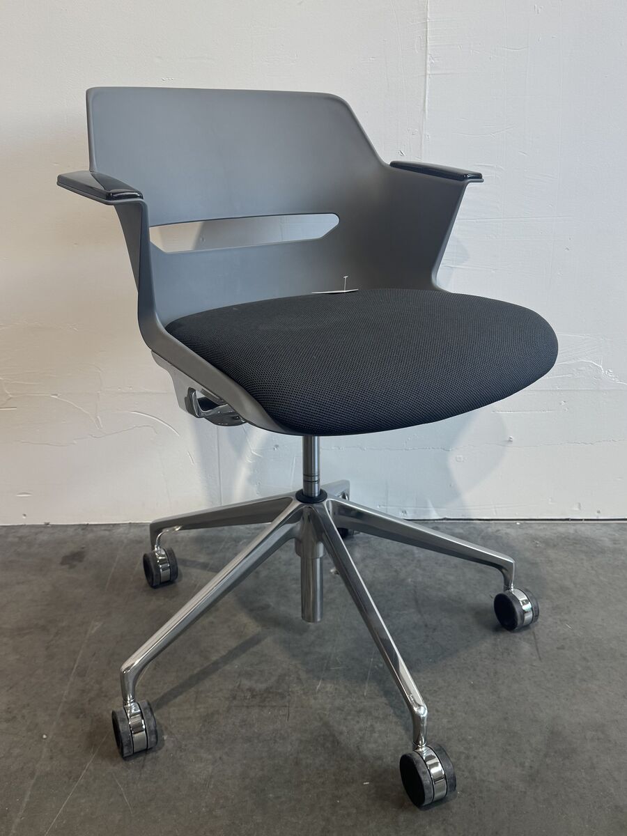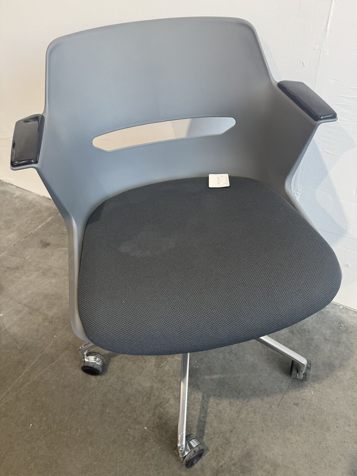 Rolling office chair, plastic seat with upholstered cushion. Brand unknown. 1 chair available.