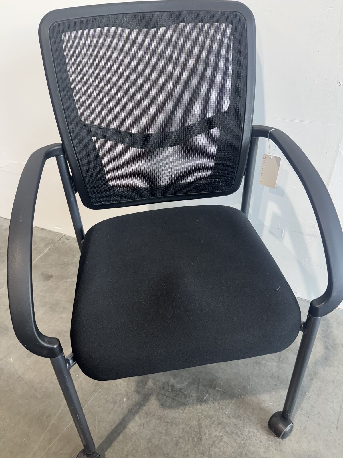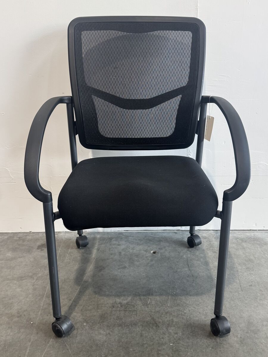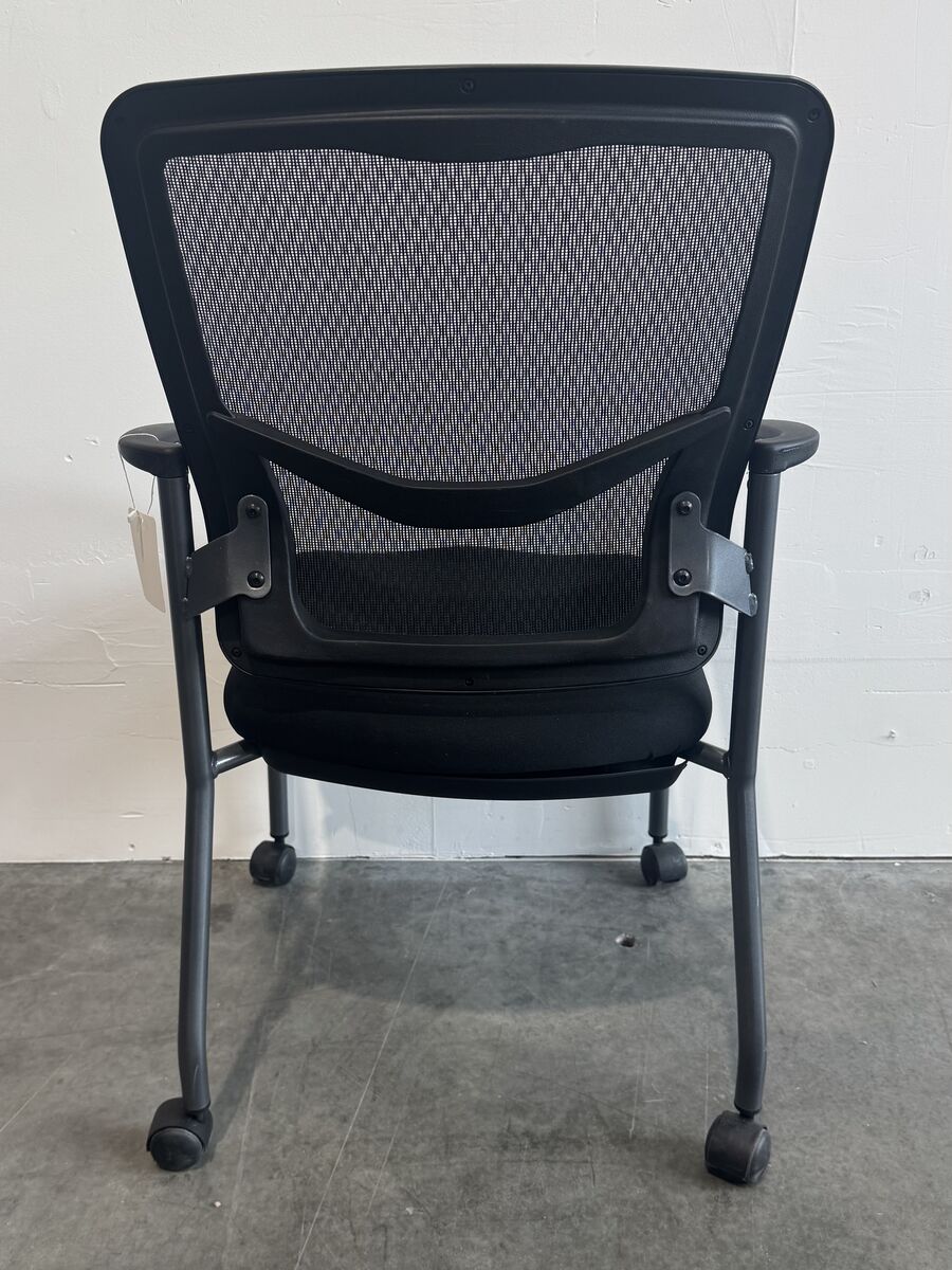 Rolling office guest chair, mesh back, black cushion by Office Star. 3 chairs available.
