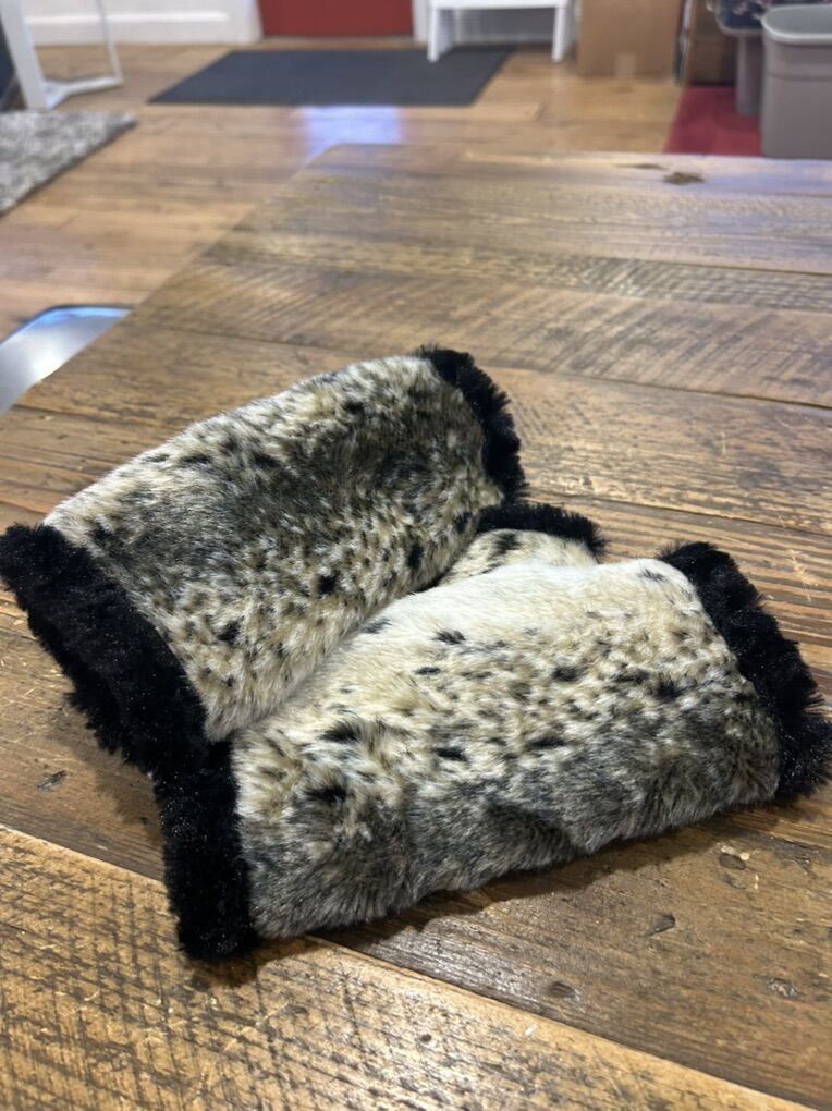 ZelleThe Polar Mitts in size small are stylish and functional gloves designed for winter and fall activities. Made with a blend of polyester and acrylic, these mitts feature faux fur accents and a slip-on cuff for easy wear. With knuckle protection and fingerless design, they provide warmth and flexibility while still being lightweight and packable. The multicolor animal print adds a touch of glam to the classic style, making them a fashionable choice for women on the go. Perfect for outdoor adventures or everyday wear, these Polar Mitts are a must-have for cold weather seasons.