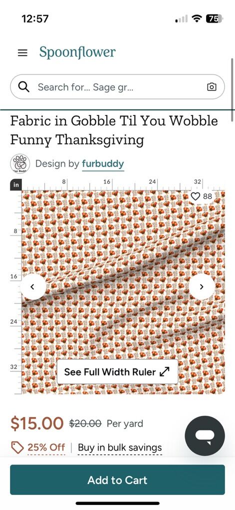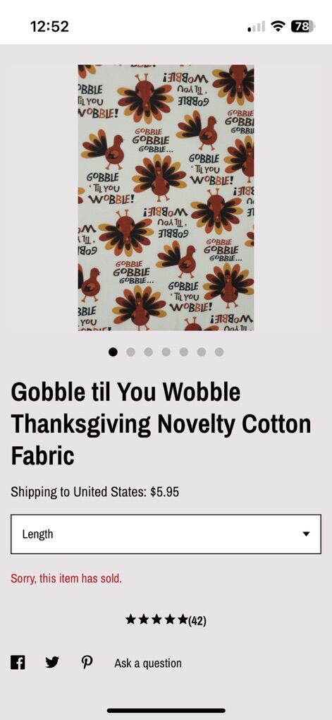 ApplePayHi, I am moving cross country and have a whole bunch of new stuff to sell. This is for a full bolt, still wrapped in plastic Thanksgiving gobble till you wobble fabric from Joanns. This is oop and the cheapest Ive found is 15.99 a yard. I have tons of fabric that I used for dog bandannas for my old grooming business. I have every holiday fabric and any grooming equipment that you may need. If you are looking for something specifically text me. Cash or Venmo only. Text is best. Thank you for your time and check out my other listings.