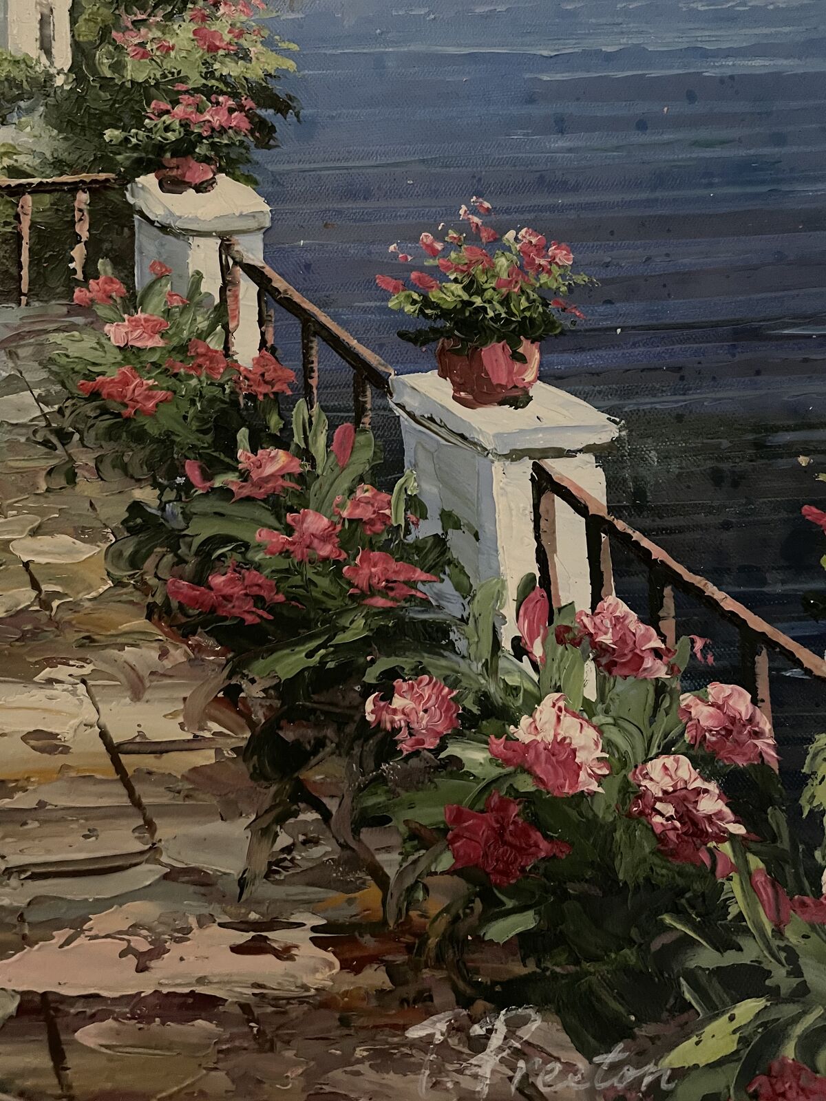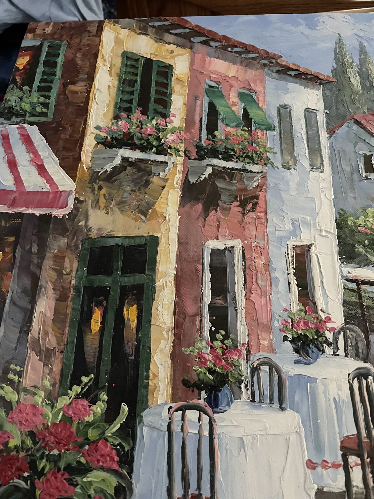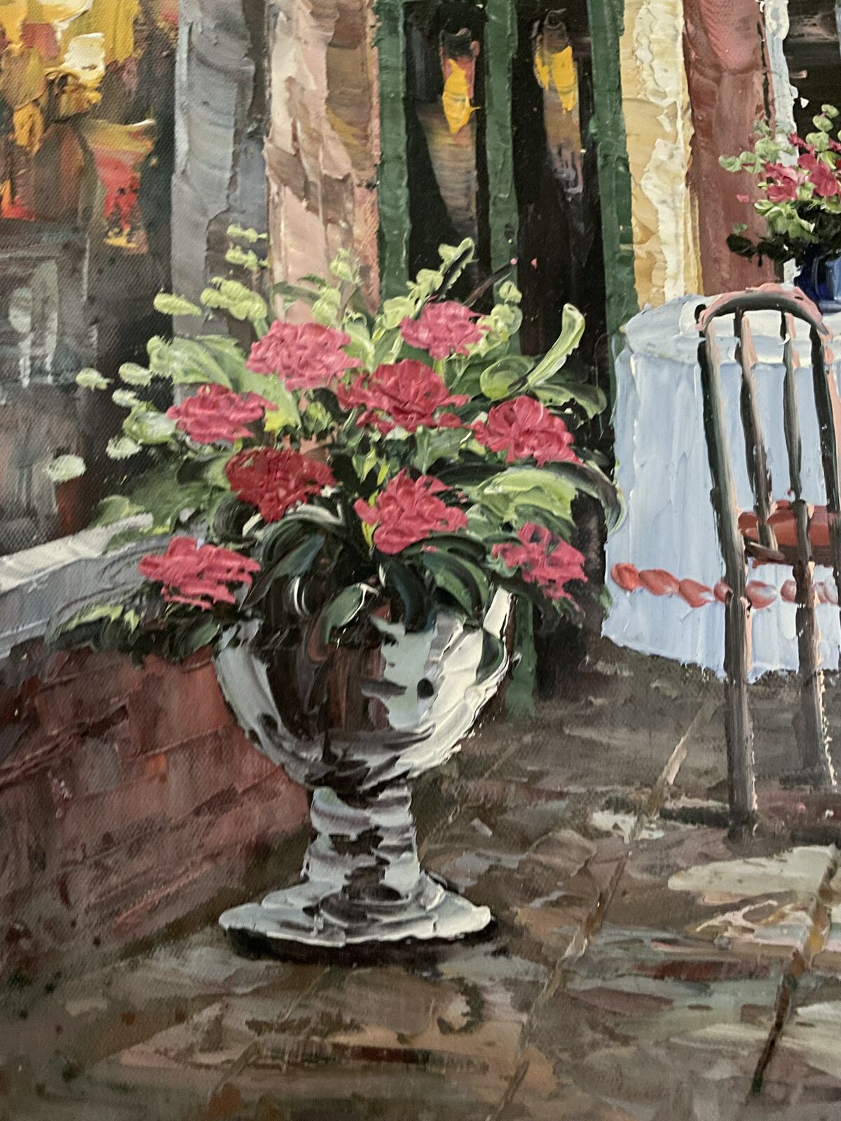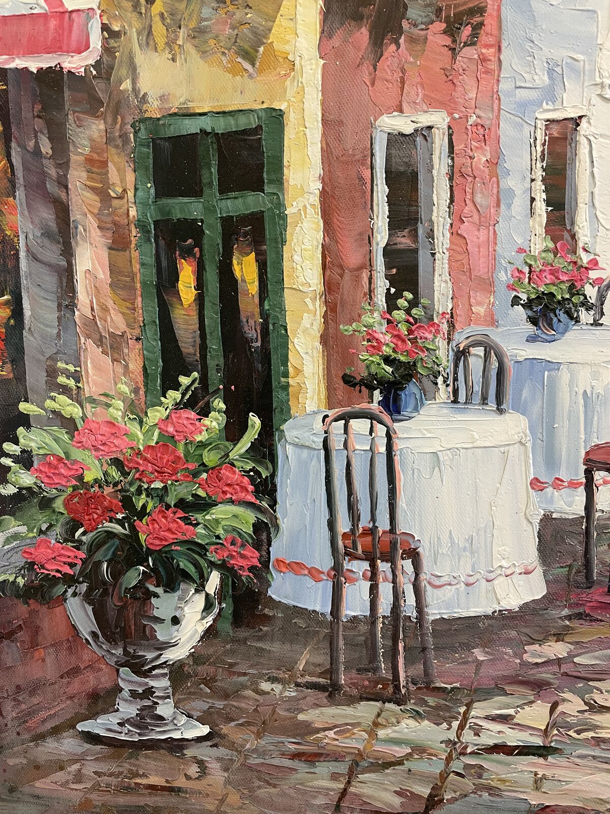 For Sale is this very nice oil painting of a Restaurant with an Ocean Side View.