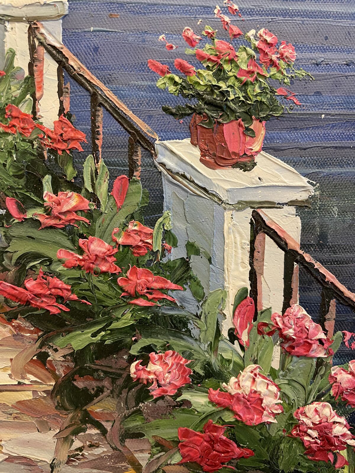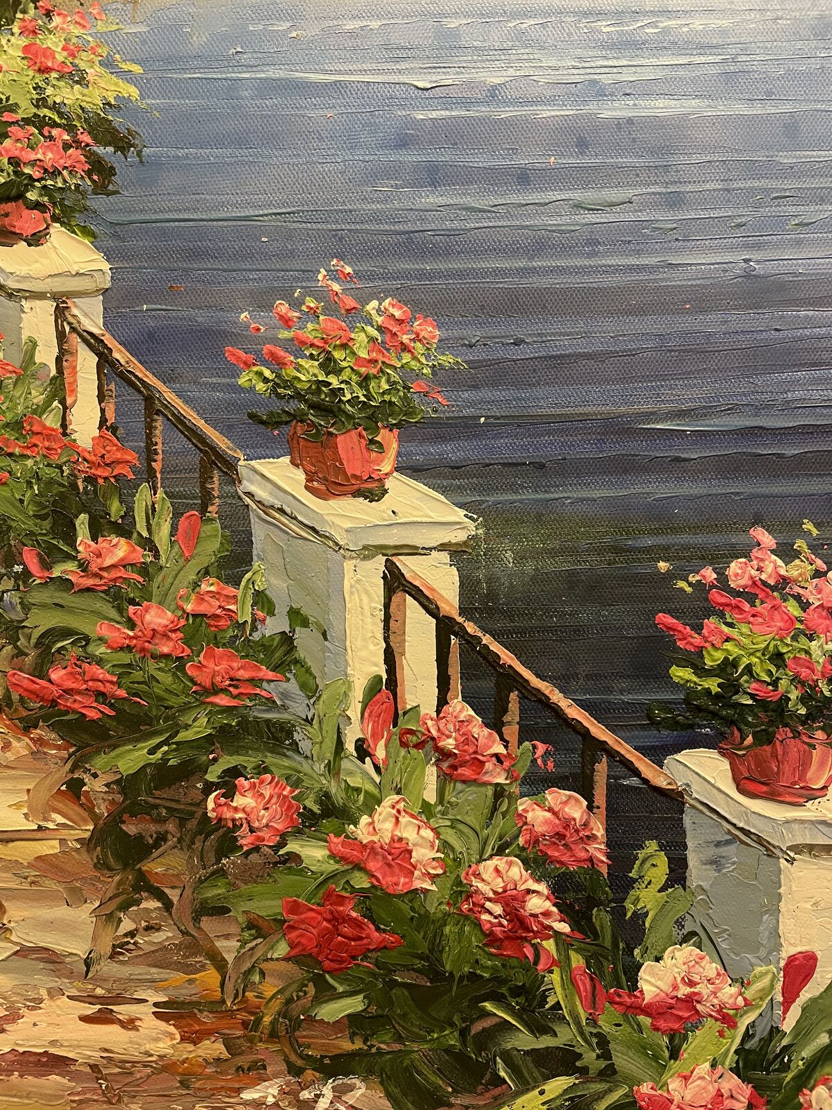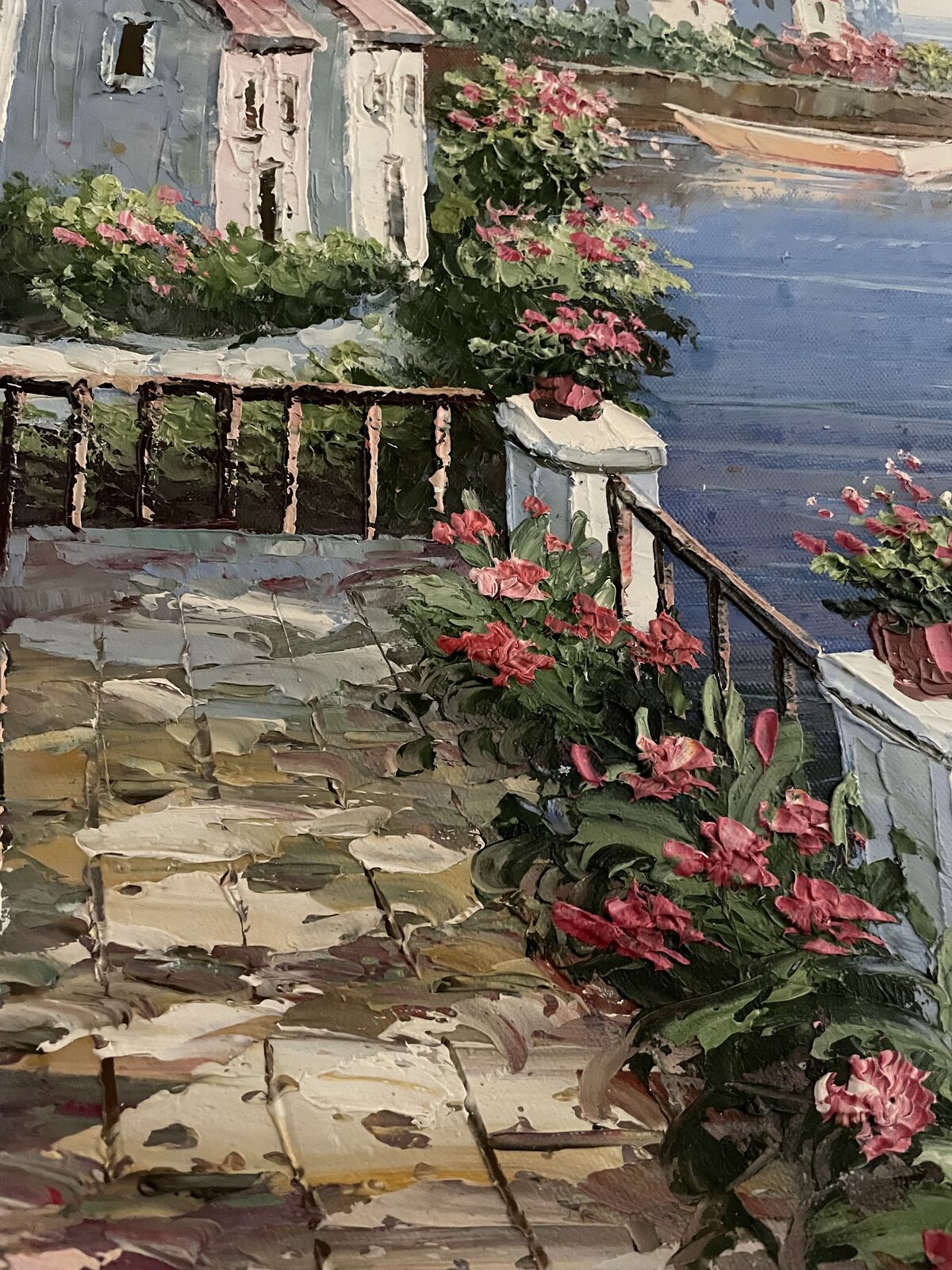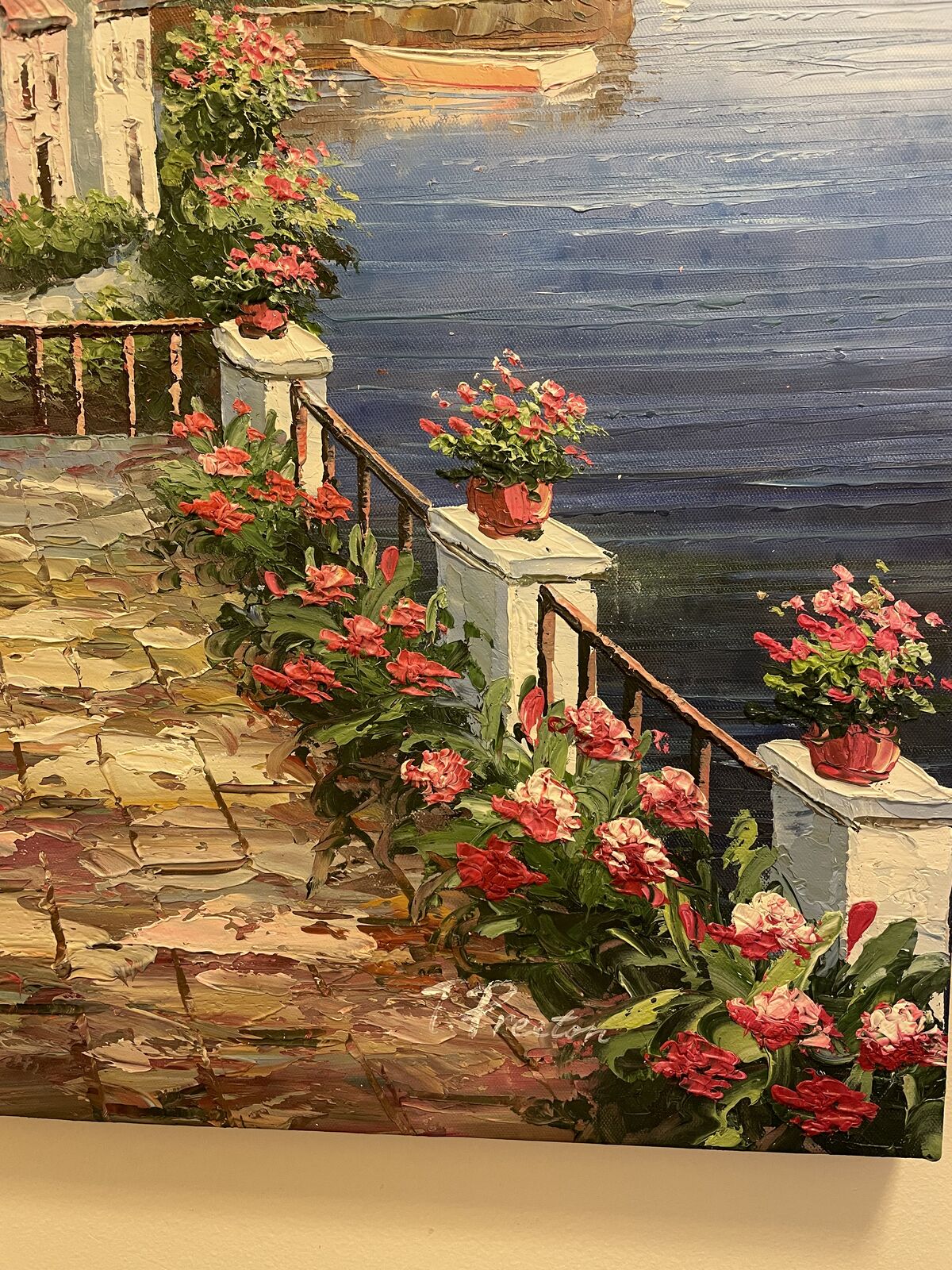 For Sale is this very nice oil painting of a Restaurant with an Ocean Side View.