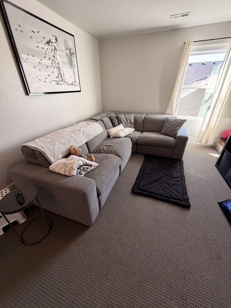 ApplePayHas 5 pieces, shown here with 4. 3 of pieces have the electric recline. Shown are 2 of recliners. The third is in storage. USB charging ports in each armrest. Too big for our loft space. Smoke free home but we do have a dog, Upholstery will be professionally cleaned.