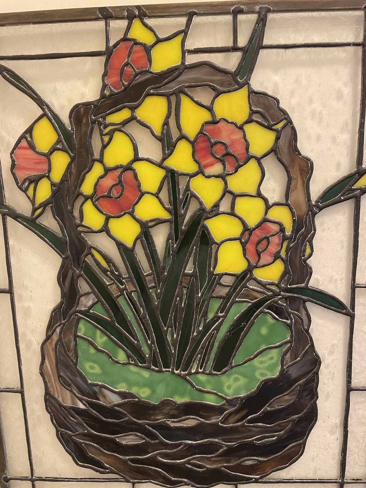 For Sale is this stunning stained glass picture of Yellow and Orange Flowers