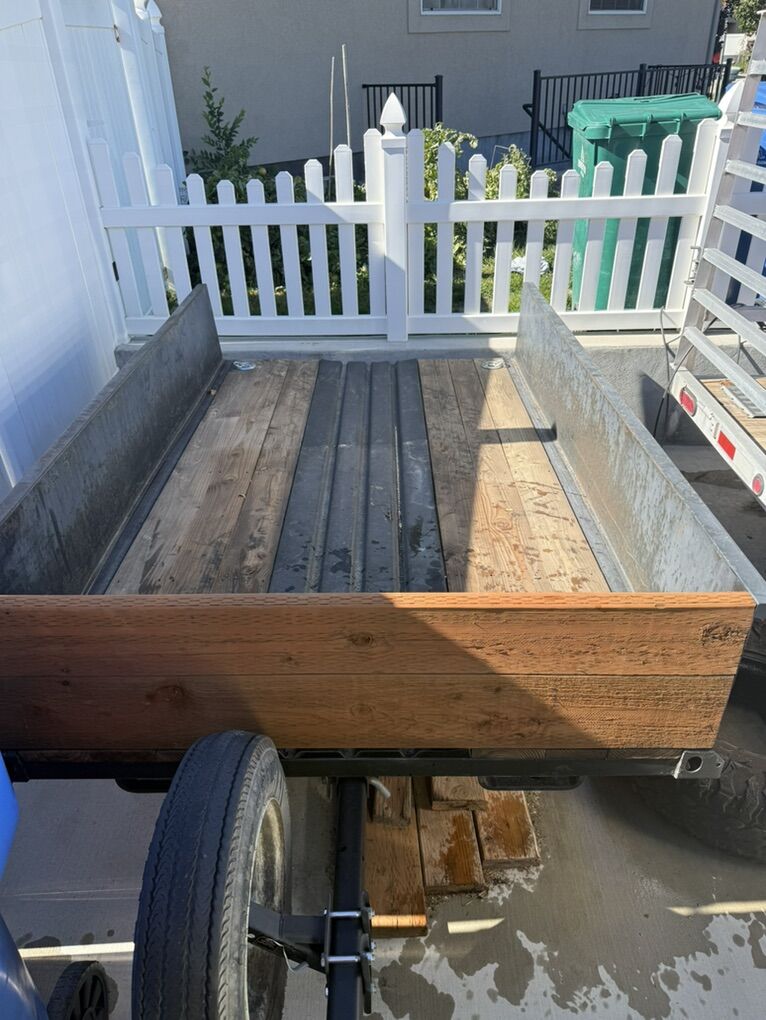 Venmo5x8 Tilt Bed single axle trailer. Brand new wheels and tires. All new wood decking. All new wiring and lights. New D-Ring tie downs. New spare tire holder. Great trailer for motorcycle, ATV or Snowmobile. Center of the decking is steel. Sides are removable to make it a flat bed. Asking $700. No Trades