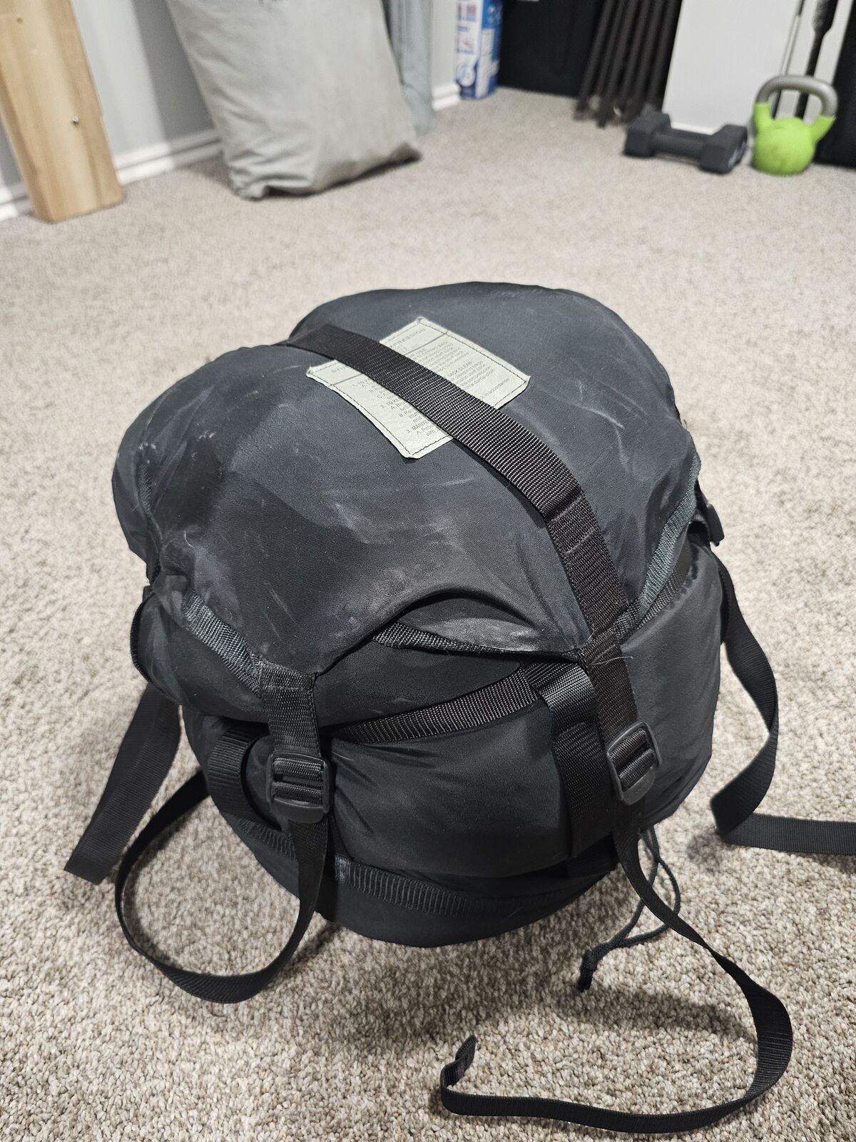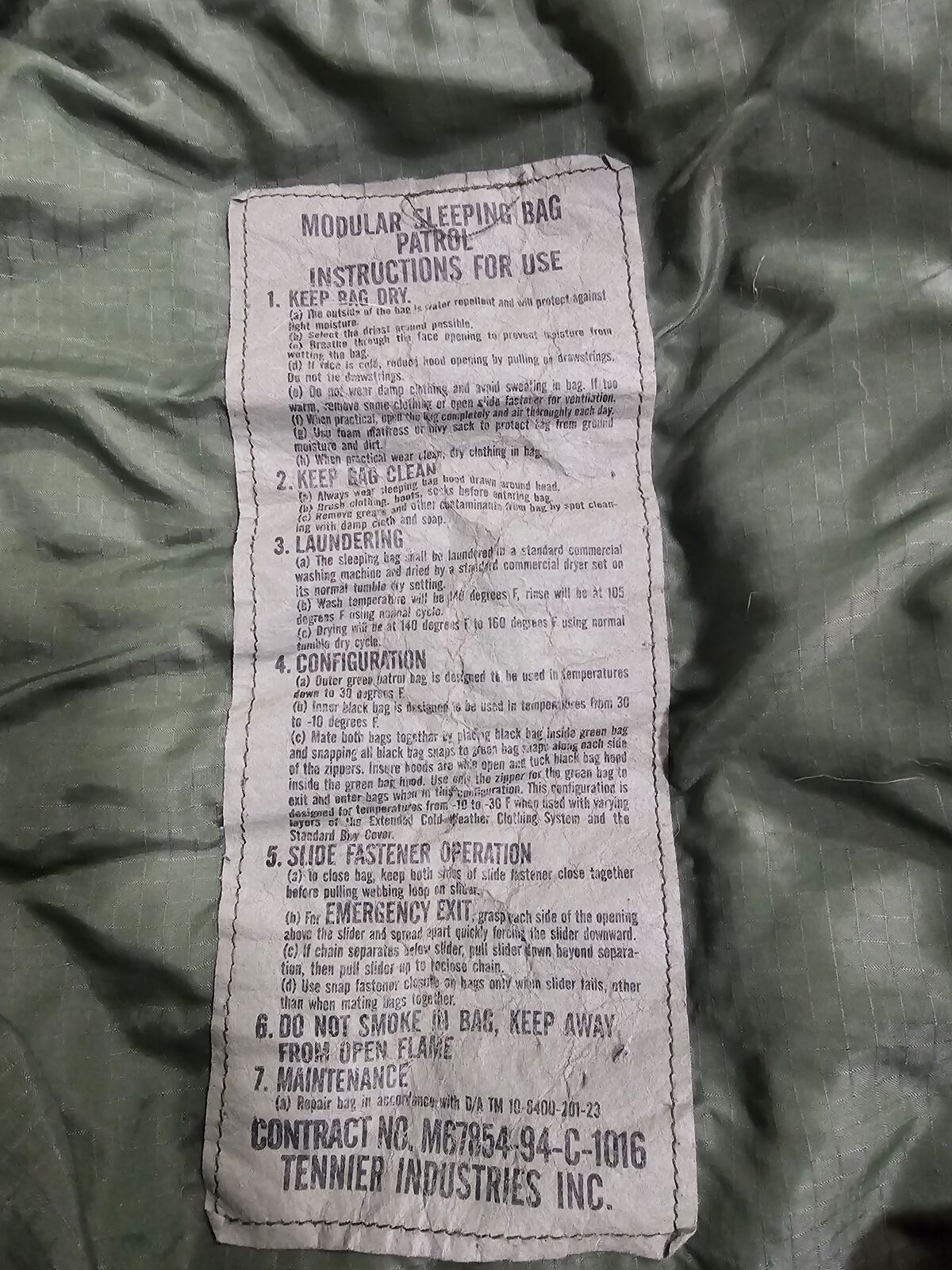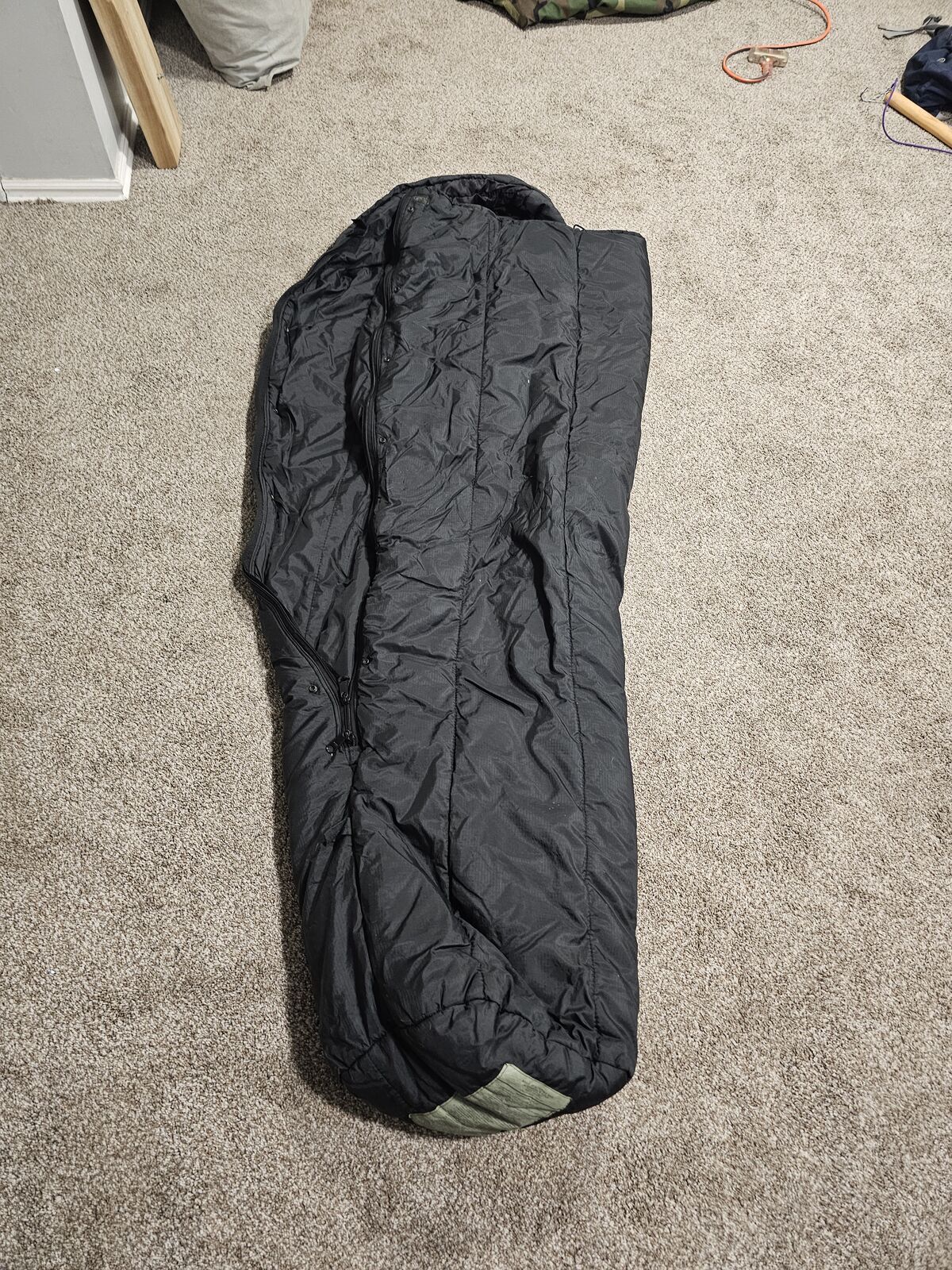VenmoSystem is comprised of 3 layers that can be removed or added as needed. The outmost layer is a waterproof shell. The middle layer is a moderate insulation layer. The inner layer is a thick insulation layer. Each layer has is own heavy duty zipper. The layers snap together so that when connected the openings of each layer stay orientated correctly. The waterproof layer is indeed waterproof. While using it, I slept through a heavy rainstorm and woke to find myself in a puddle. No water intrusion occurred. Included is stuff sack. Total of 4 pcs. System compresses surprising well and is pretty light weight for how rugged it is. Comes with a sleeping bag hanger (not pictured)