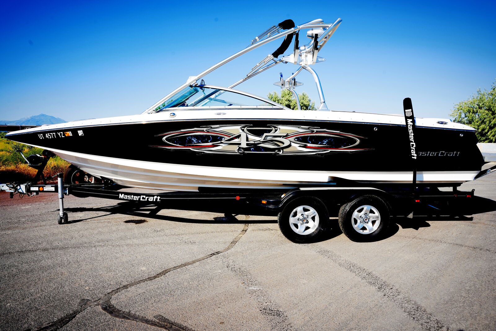 **2005 MasterCraft X45****2-Year Engine Warranty Included – New Engine Installed!**This X45 has just 540 total hours and features a brand-new Indmar 8.1L Vortec engine backed by a 2-year warranty. It’s also upgraded with a Wakemakers Ballast System fully integrated and controlled from the dash, in addition to the built-in factory ballast.