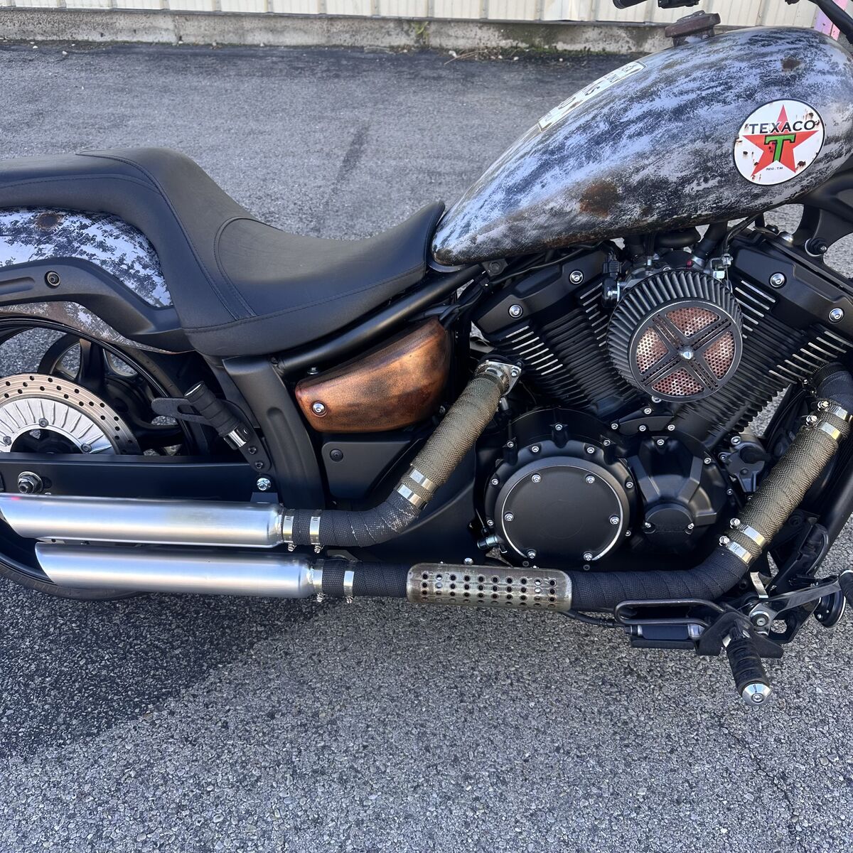 This customized Stryker looks like it came right out of Mad Max! It is a super clean bike but looks like its been through an apocalypse due to the fully custom paint job, upgraded exhaust with wrap, and exposed air filter! It has a very reliable 1300cc engine with fuel injection. It has just 24k miles and a clean and clear title!