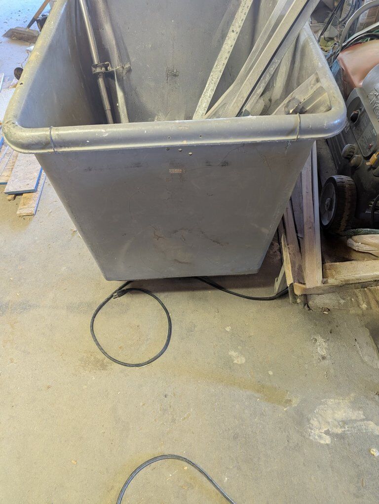 42" long 31" wide 29" deep extra heavy duty great for commercial use to haul tools and materials in and out.