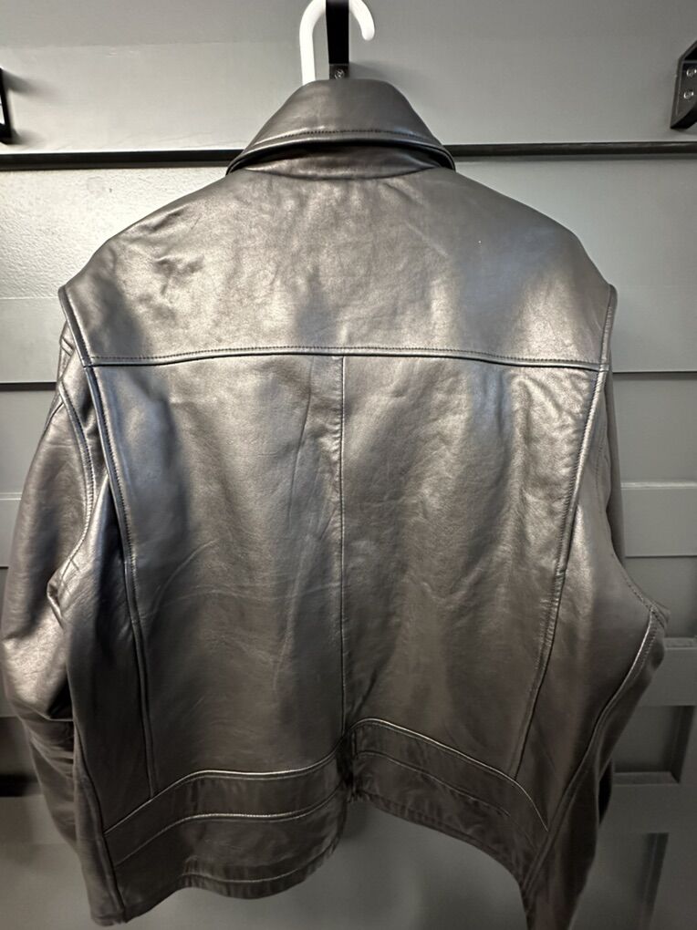 ApplePayGenuine Black Leather Coat Sz mens L, very nice Smoke free and pet free Please text 801-644-3368 Thanks No codes No Trades