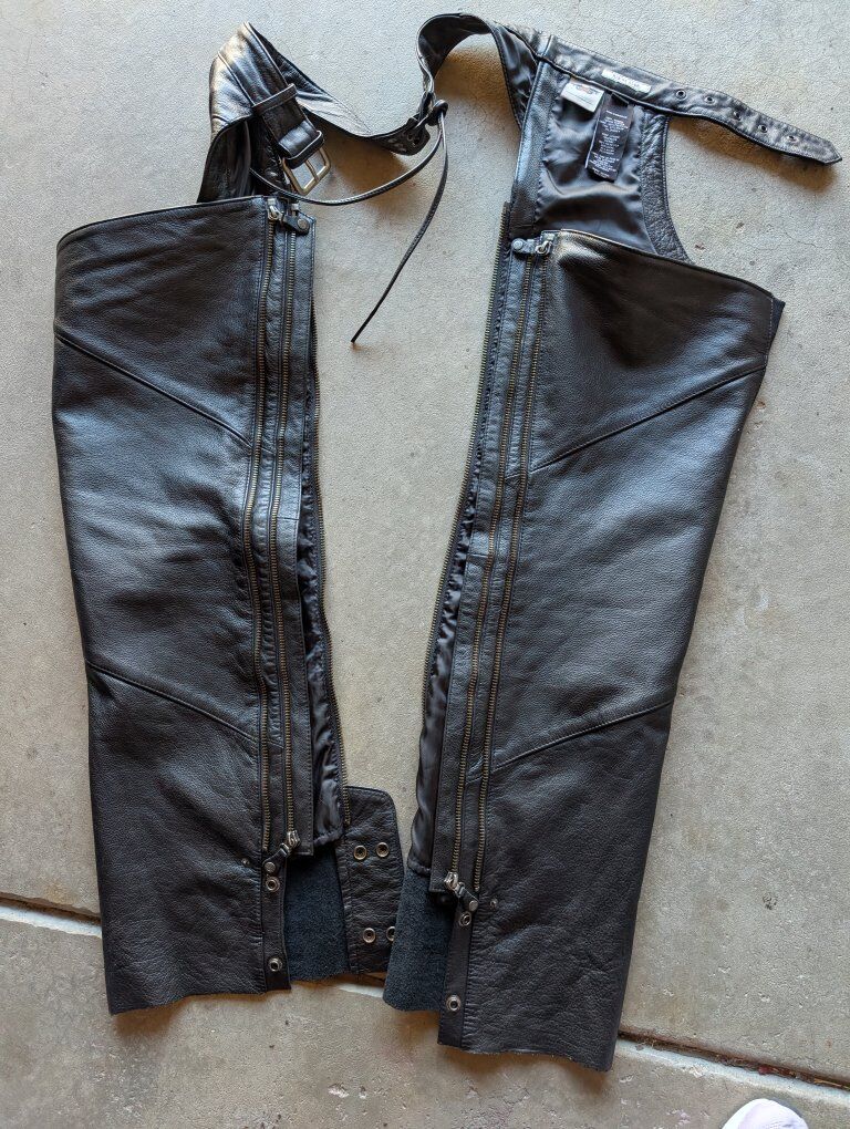 Adjustable sizing w/ -Drawstring back -Snap Hem -Double zippered legs