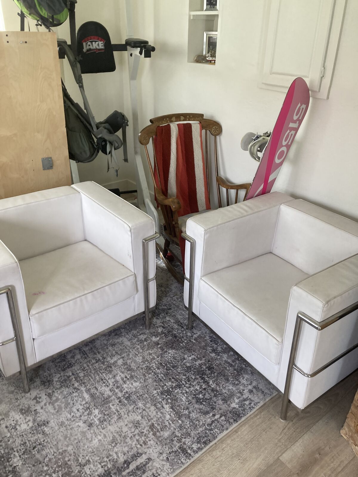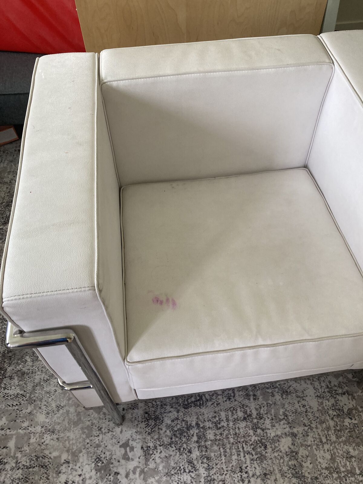 White leather. Has a small stain, I'm sure it will come out if you give it some attention. asking 50$ for both. call or text Dave 4355650908