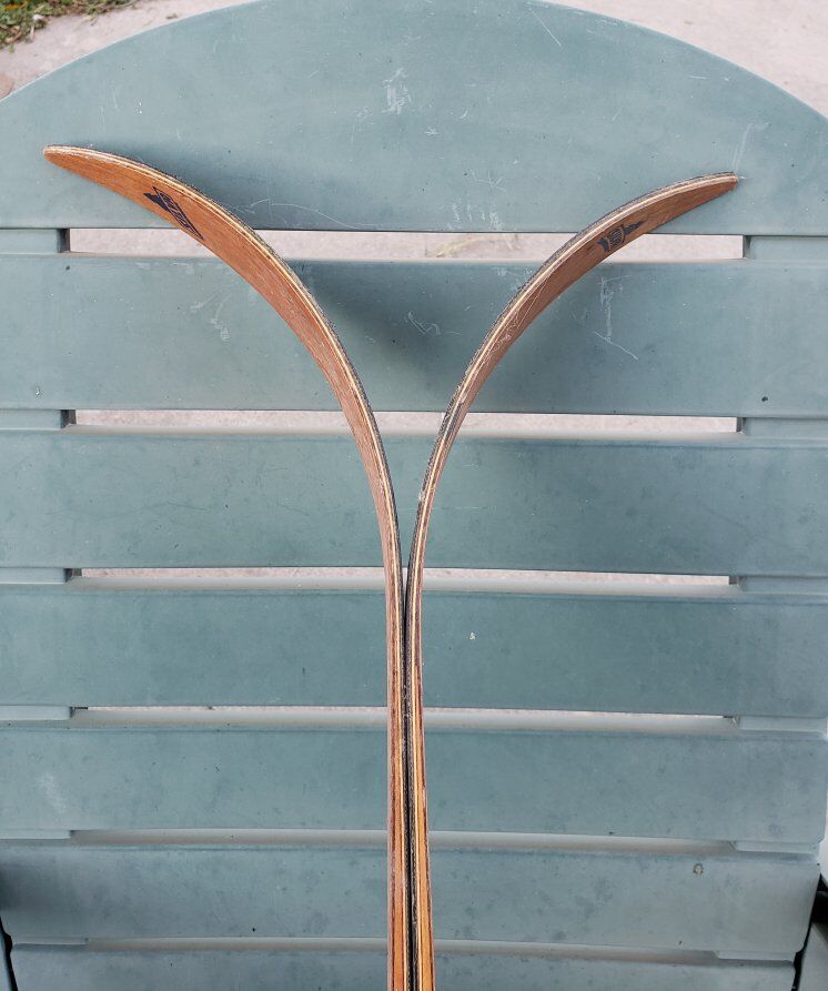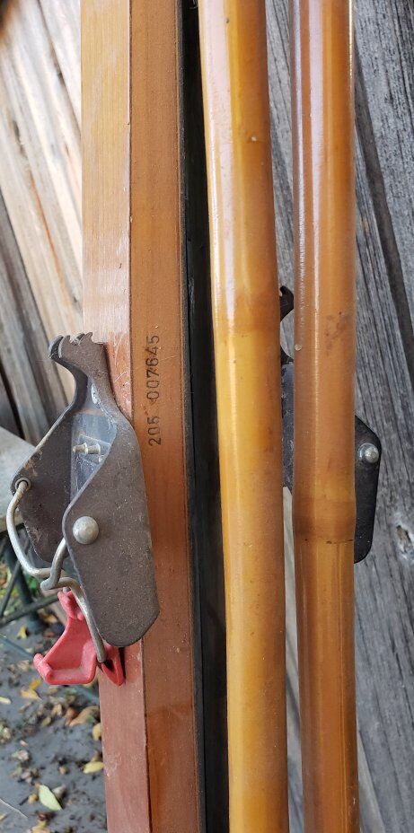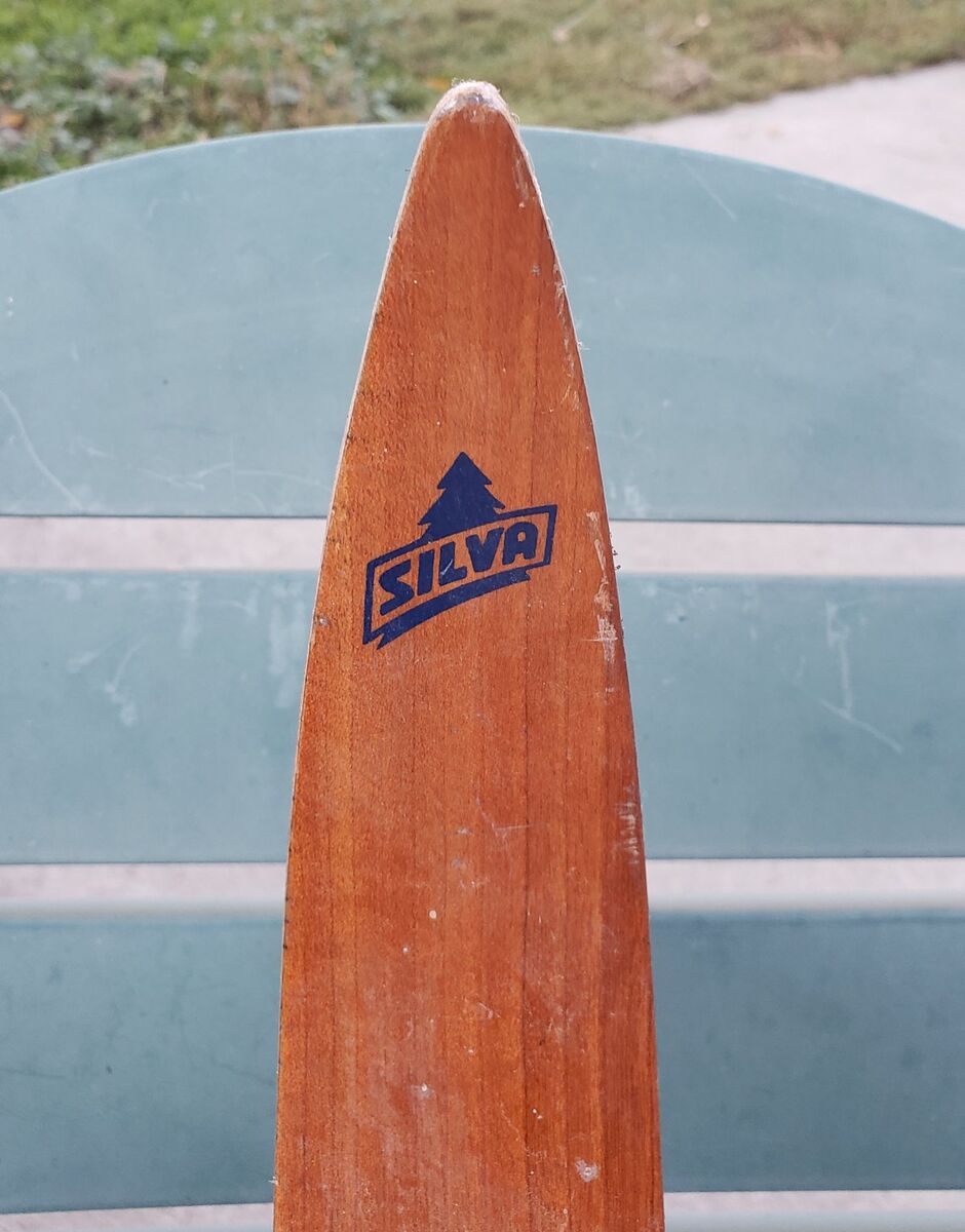 ANTIQUE NORWEGIAN wooden SKIS and poles SILVA HUSKI GT Message anytime to come and see