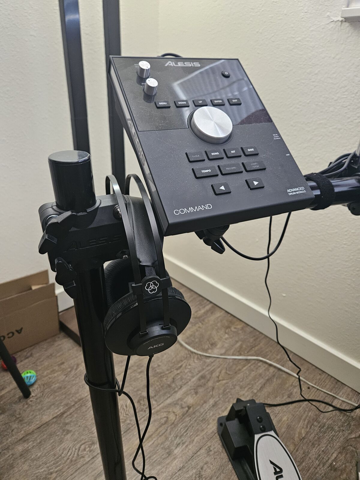The complete package includes: Alesis Command X Mesh Kit Special Edition Tama Iron Cobra 200 Double Bass Pedal K240 Studio Headphones