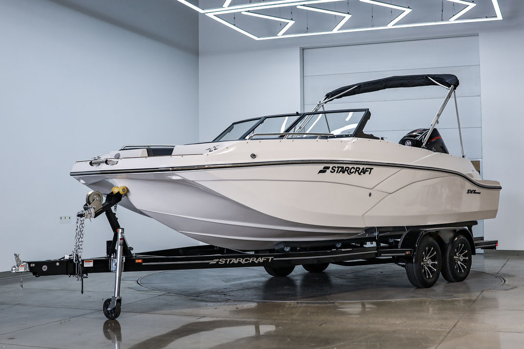 Starcraft's SVX 210 DC OB fiberglass deck boat is the best recreational family boat, offering spacious seating and ample storage for all your gear. Its durable construction and versatile layout make it perfect for enjoying weekends on the water with loved ones.