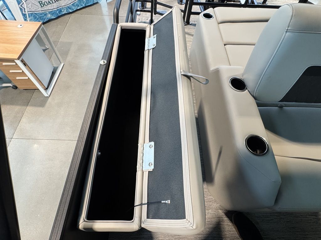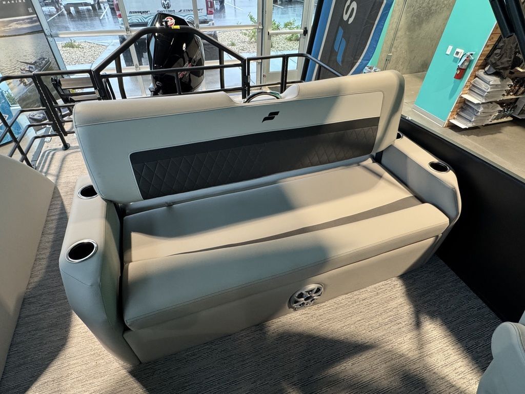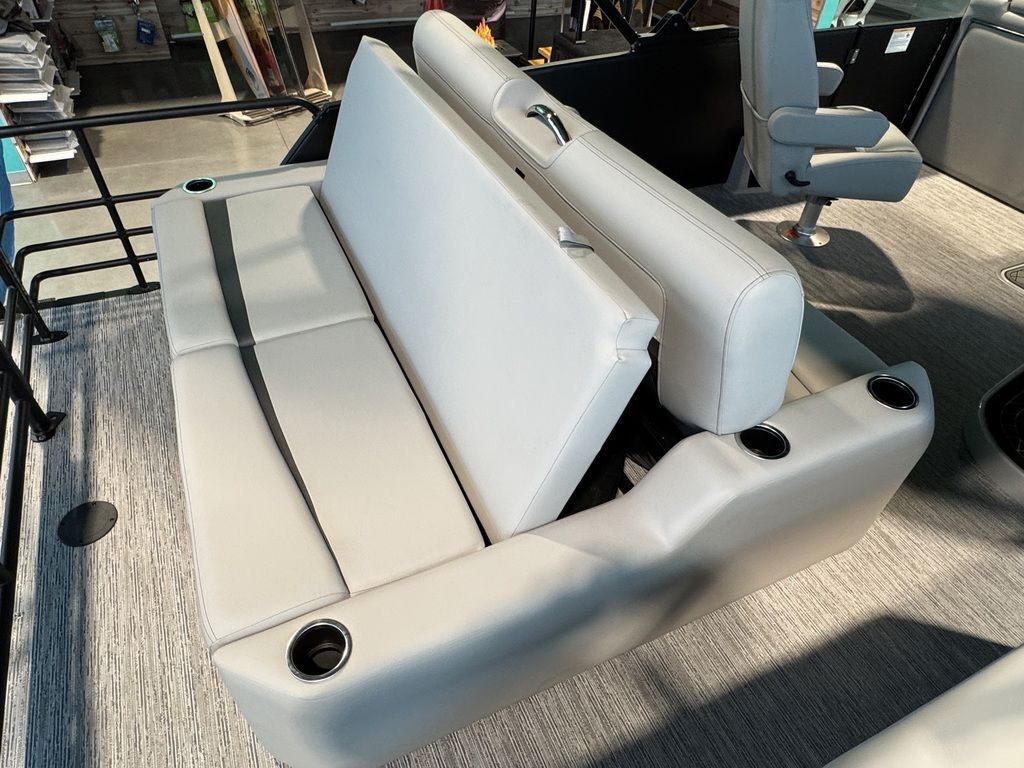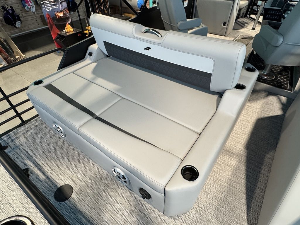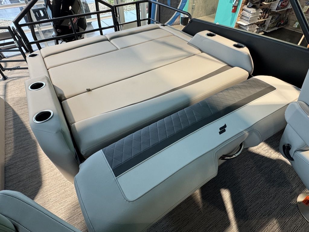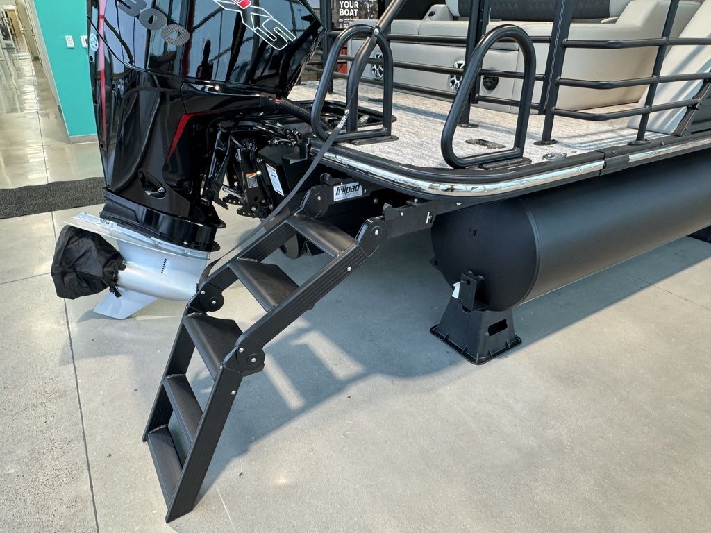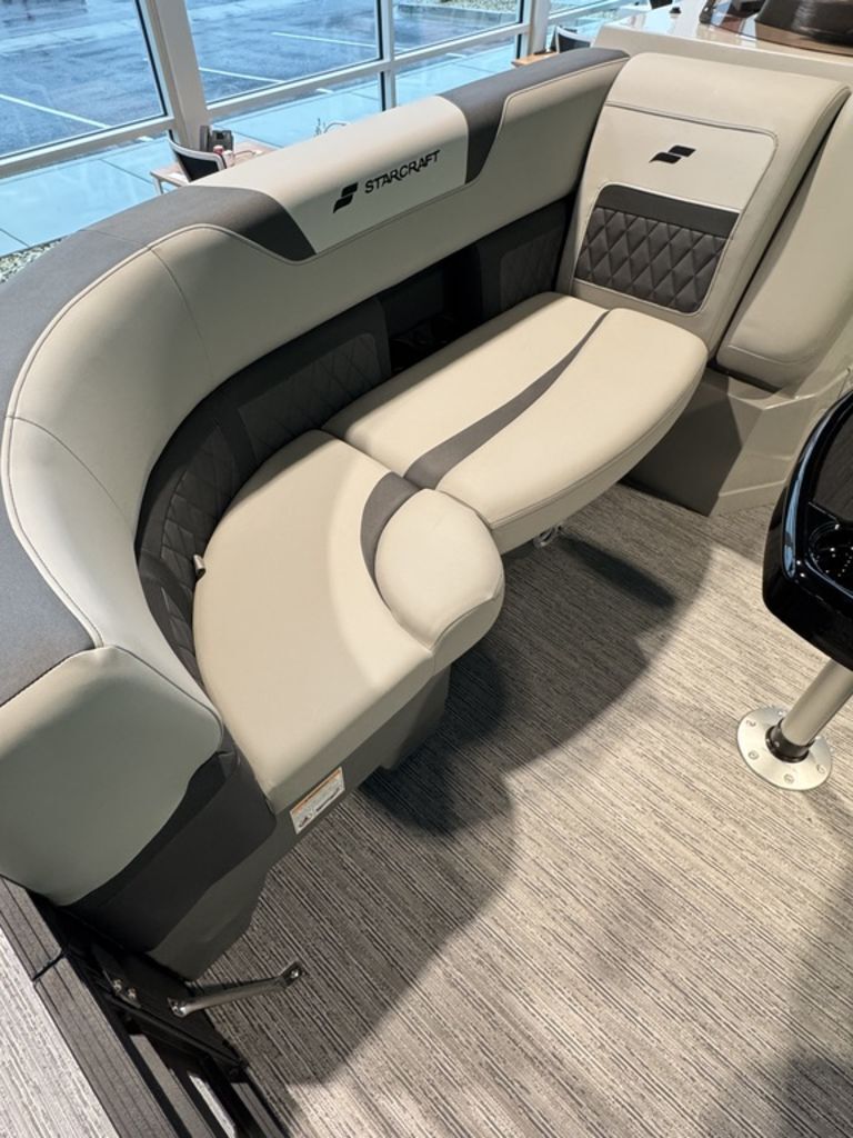 The Starcraft Pontoon SLS 3 Q DH, in the all new satin black exterior, is an exceptional choice for those who crave both performance and versatility on the water. Equipped with the HMX Third Tube Performance Package, this pontoon delivers enhanced stability and agility, ensuring an exhilarating ride with every outing. The standout feature is the convertible flip back lounge, allowing for effortless transitions between relaxation and active fun, accommodating both lounging and socializing. With its sleek dual helm design and thoughtfully crafted amenities, the SLS 3 Q DH promises a fantastic experience for families and friends alike, making every day on the water truly memorable.