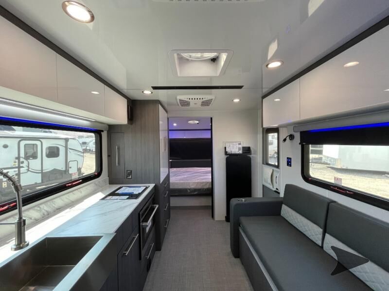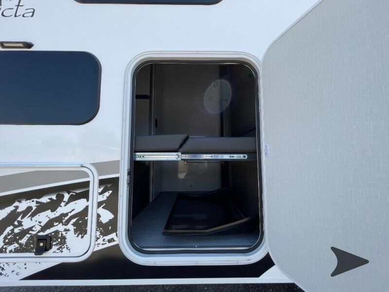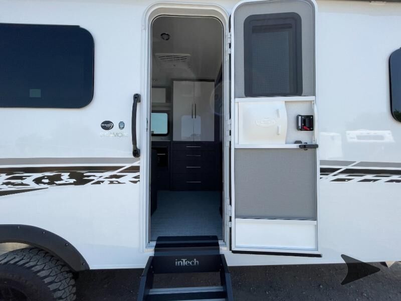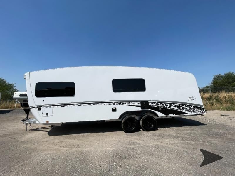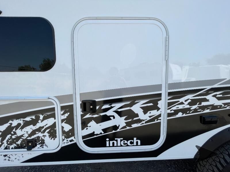 inTech RV Aucta Sycamore travel trailer highlights: Walk-Around Queen Bed Private Toilet and Sink Two Burner Cooktop Bluetooth Stereo Overhead Cabinets Experience the freedom of the open road in our cozy travel trailer, perfect for families or couples seeking adventure. The full bathroom provides all the essentials for a comfortable stay, and the convenient bunk beds are perfect for kids or guests. The plush sofa is a great spot to relax and unwind after a long day of exploring. The two-burner cooktop allows you to whip up delicious meals on the go, and the 12V refrigerator keeps your food and drinks fresh. The front bedroom is a serene retreat, featuring a spacious queen-size bed and ample storage space. The convection microwave makes cooking and reheating meals a breeze, and the pantry keeps your snacks and ingredients organized. This model also has a dry weight that ranges from 6,750-7,100 lbs., a tongue weight between 700-750 lbs., and a carrying capacity between 2,300-2,650 lbs. You may also like to choose the optional Rover Package that includes a 3" lift, an aluminum tube rear bumper, rugged decals, and more! With any Aucta travel trailer by inTech RV you will enjoy creative interior spaces, luxury features, and smart storage spaces for a one-of-a-kind trailer. The one-piece fiberglass roof, all-aluminum cage frame, and Dexter torsion axle provide durable construction and smooth towing, and the fold-away double entry steps and power tongue jack will make set-up easier than ever. Inside, you'll find Infinity woven flooring, a large farmhouse sink, USB ports and 120V outlets, plenty of storage compartments, and MaxxAir vent fans to keep everything fresh. These models also include bubble foil insulation in the walls and ceiling, along with a 25K BTU furnace and a 15K BTU A/C so you can make memories year around!
