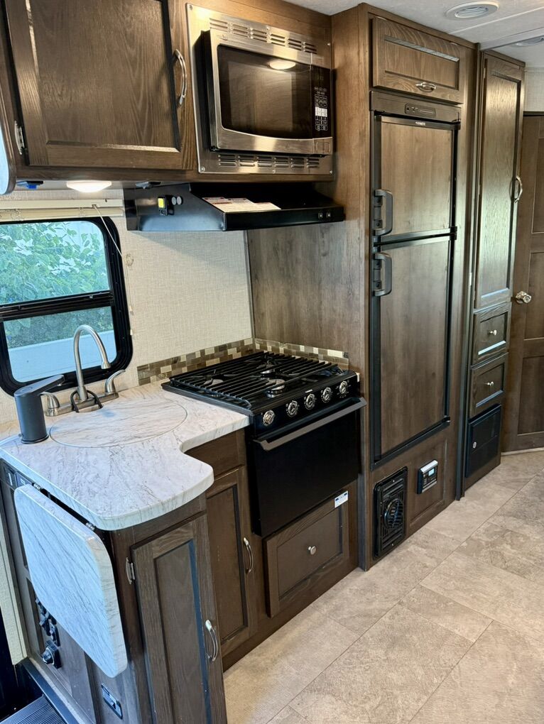Specs: 25 feet long, sleeps six, two slide-outs, 35-gallon fresh water, 32-gallon gray, 35-gallon black. 26-gallon fuel tank, GVWR 11,030 pounds. Ceramic toilet, awning. Excellent condition, ready for your next adventure