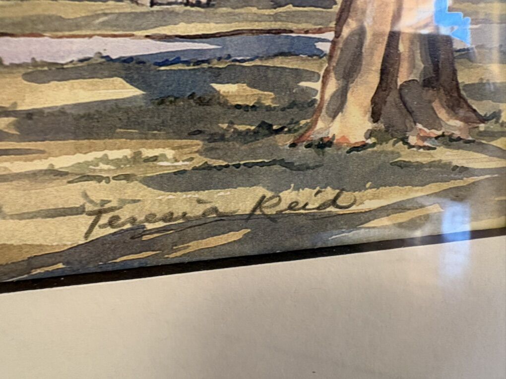 I have a numbered print of a watercolor signed by the artist, Teresia Reid. It is matted and framed in a dark brown frame. The fame is just under 18 inches wide and 15 inches tall. It has wire on the back for hanging it. The last 5 pictures show other artwork that I have listed on KSL. See my other ads for jewelry, artwork, home decor and more.