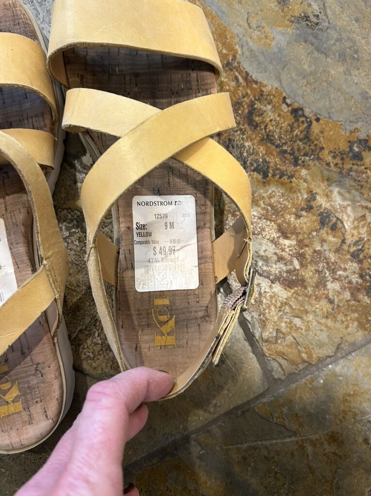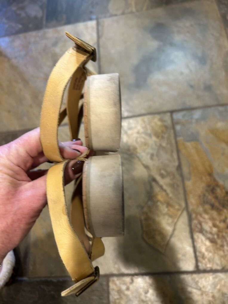 VenmoIn great condition, yellow genuine, leather platform, sandals from Korks. Women’s size 9. Clean smoke free. Cash or Venmo. Pick up from Alpine.
