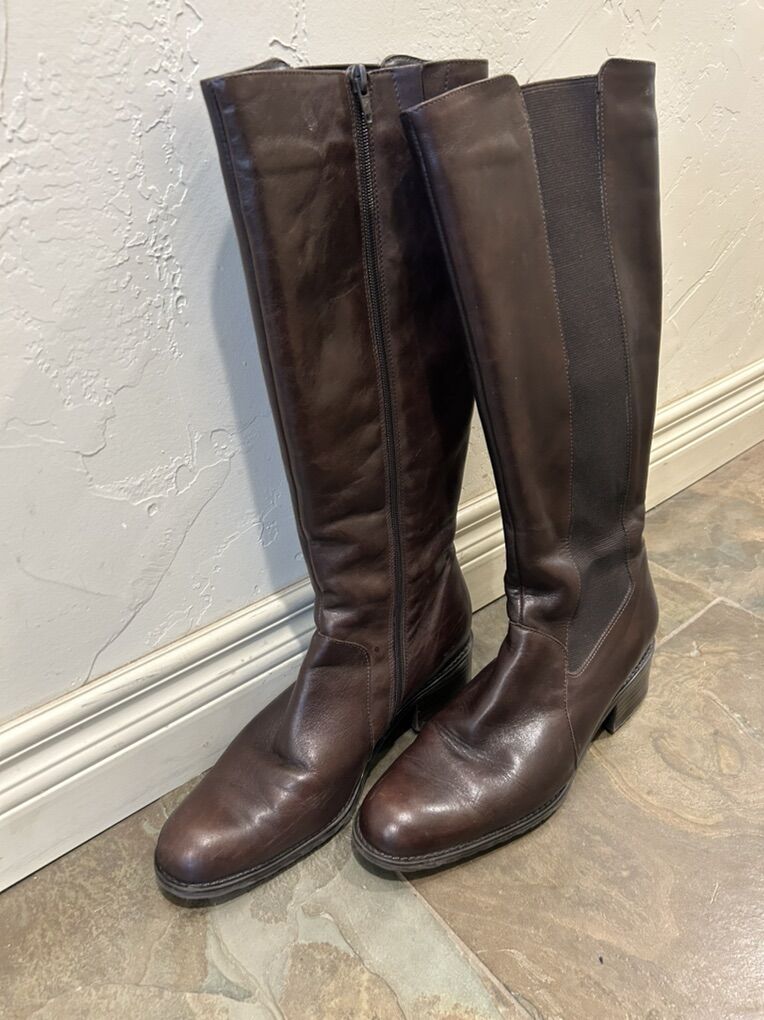 VenmoIn excellent condition Elle genuine, brown leather knee-high lined tall boots in women’s size 9. Beautiful, comfortable functional warm. Clean smoke free. Interior zipper works smoothly. Cash or Venmo. Pick up from Alpine.