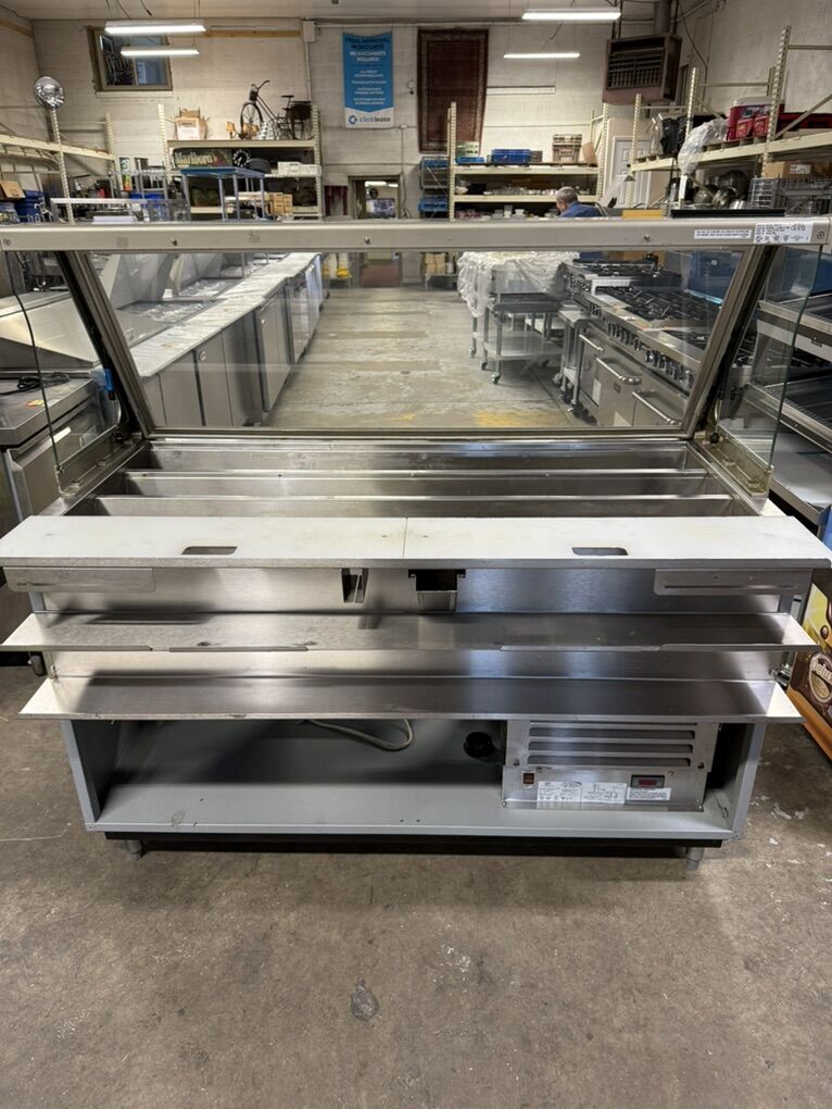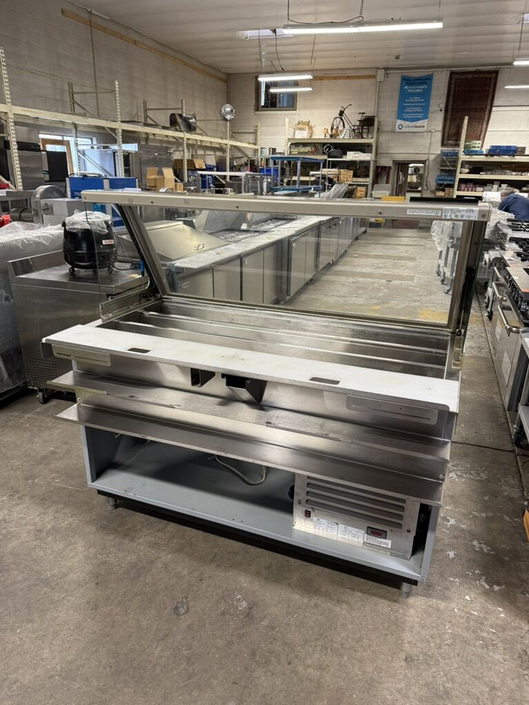 Refrigerated sandwich table with sneeze guards Glass cover to keep the food coold ,in excellent working condition Great as a sandwich and salad bar , fast foods, dimensions 60”WX34”DX36” H , cames out of SUBWAY RESTAURANT . 2 in stock