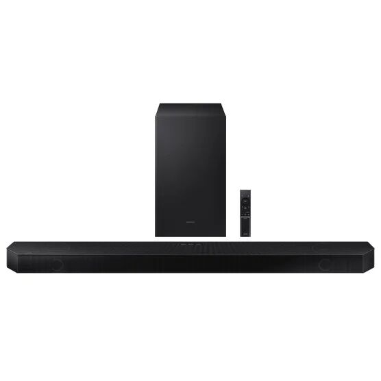 Surround yourself in multi-layered surround sound with the Q7CB. Enjoy Dolby Atmos sound from above and around without requiring HDMI cables. Experience immersive, cinematic experience with 3 channels, a powerful subwoofer, and 2 up-firing speakers. With Q-Symphony, the soundbar synchronizes with all of the internal speakers in your compatible Samsung TV. Plus, feel the intensity of the bass from the included subwoofer