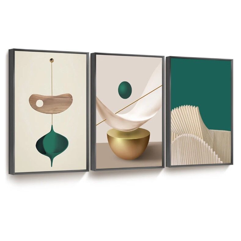 ApplePay3 Piece 24" x 32" Large Modern Abstract Canvas Framed Wall Art