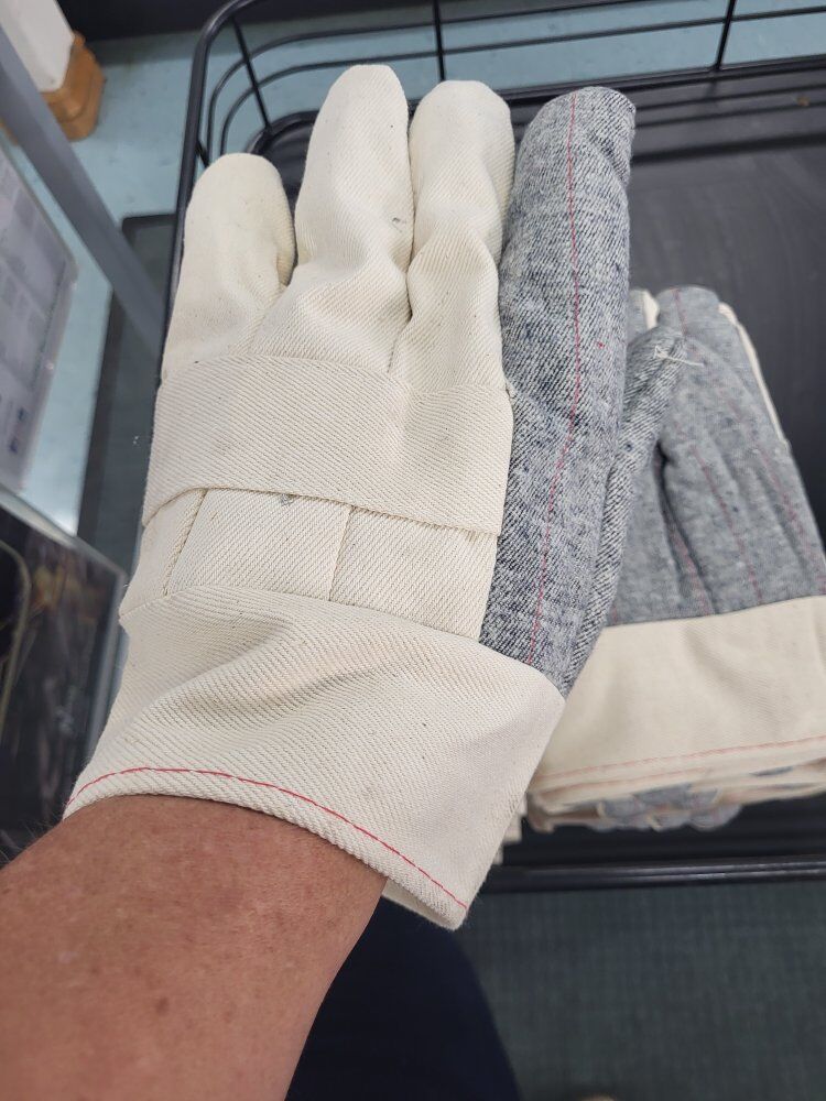 VenmoPart Canvas and Cotton Work Gloves. I have a few dozen sets. 4 pairs for $1.00 or we can make a deal when buying by the dozen.