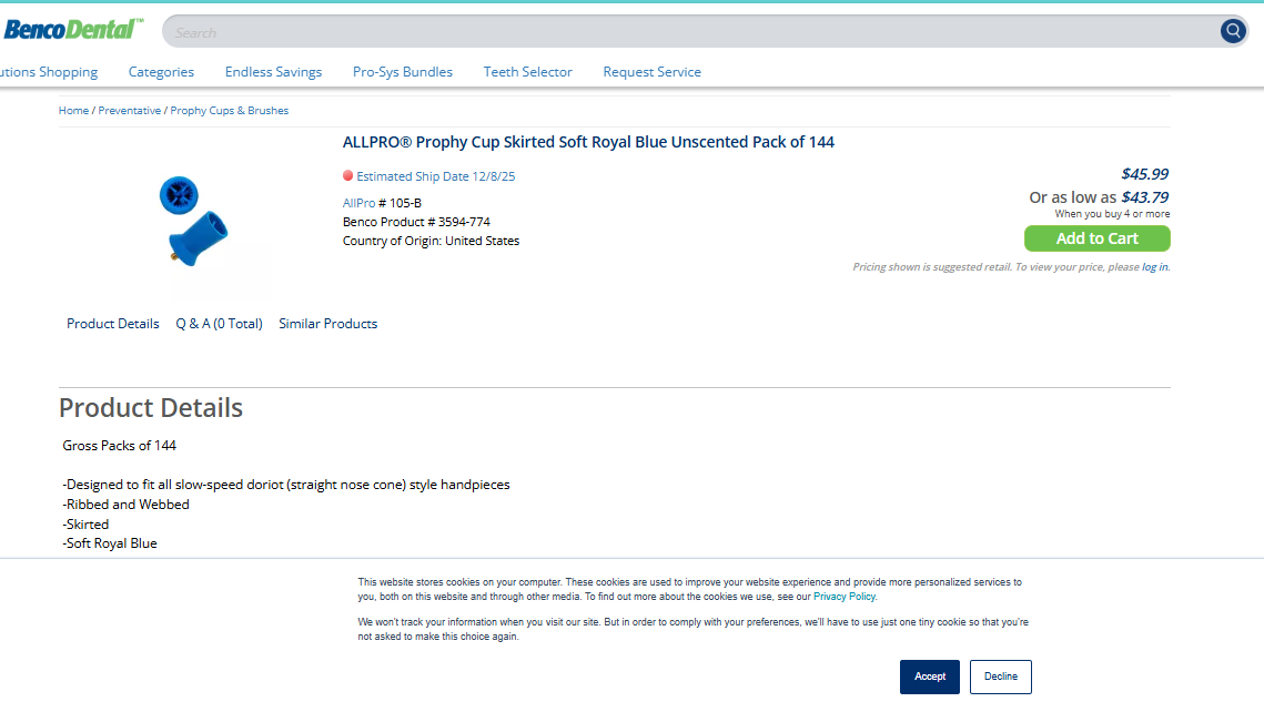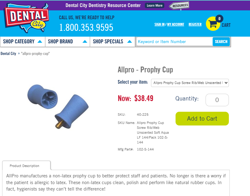 VenmoBrand new AllPro prophy cups. 4 sealed bags. Screw type, ribbed & webbed, soft, royal blue, skirted, non-latex.