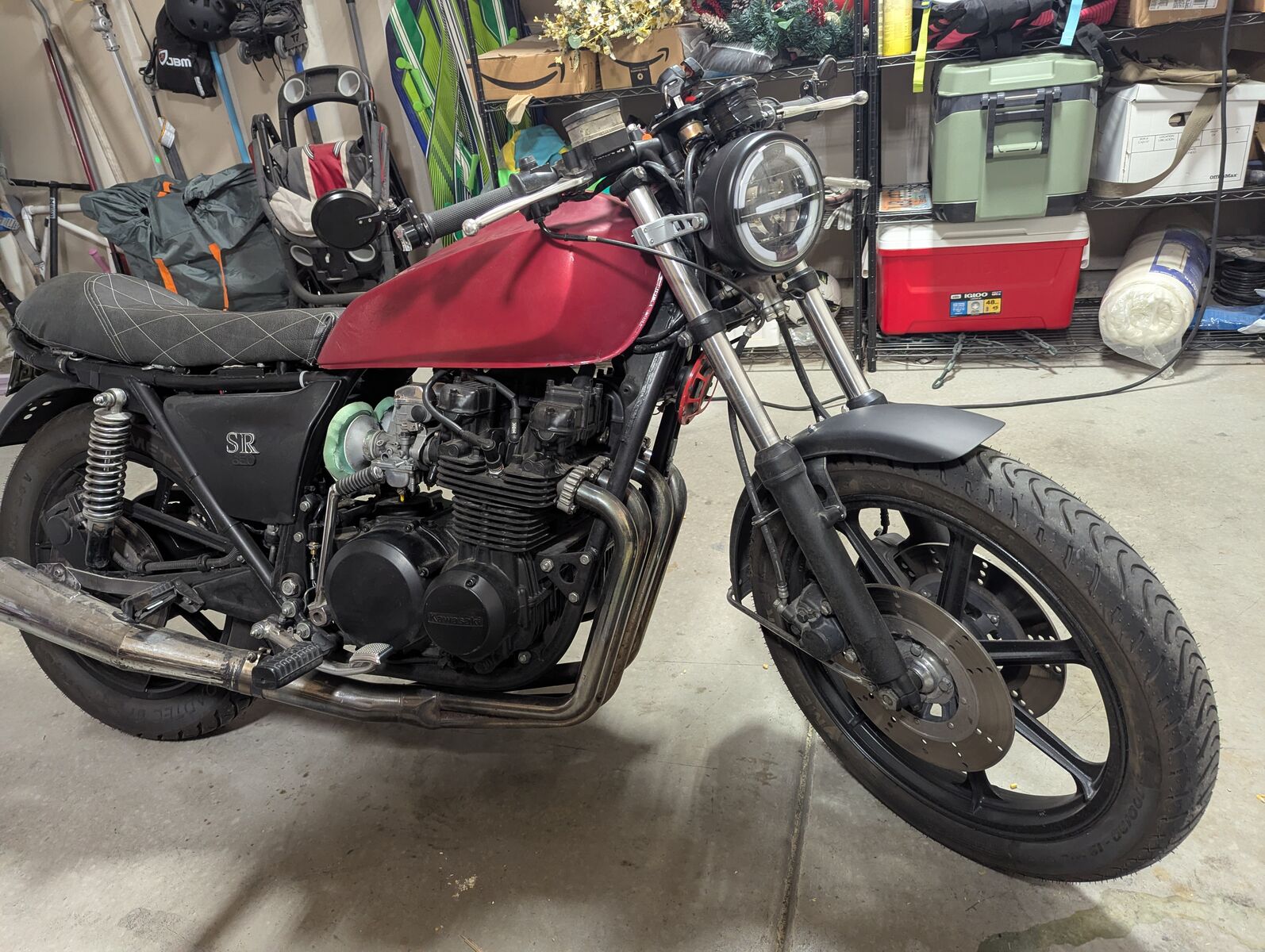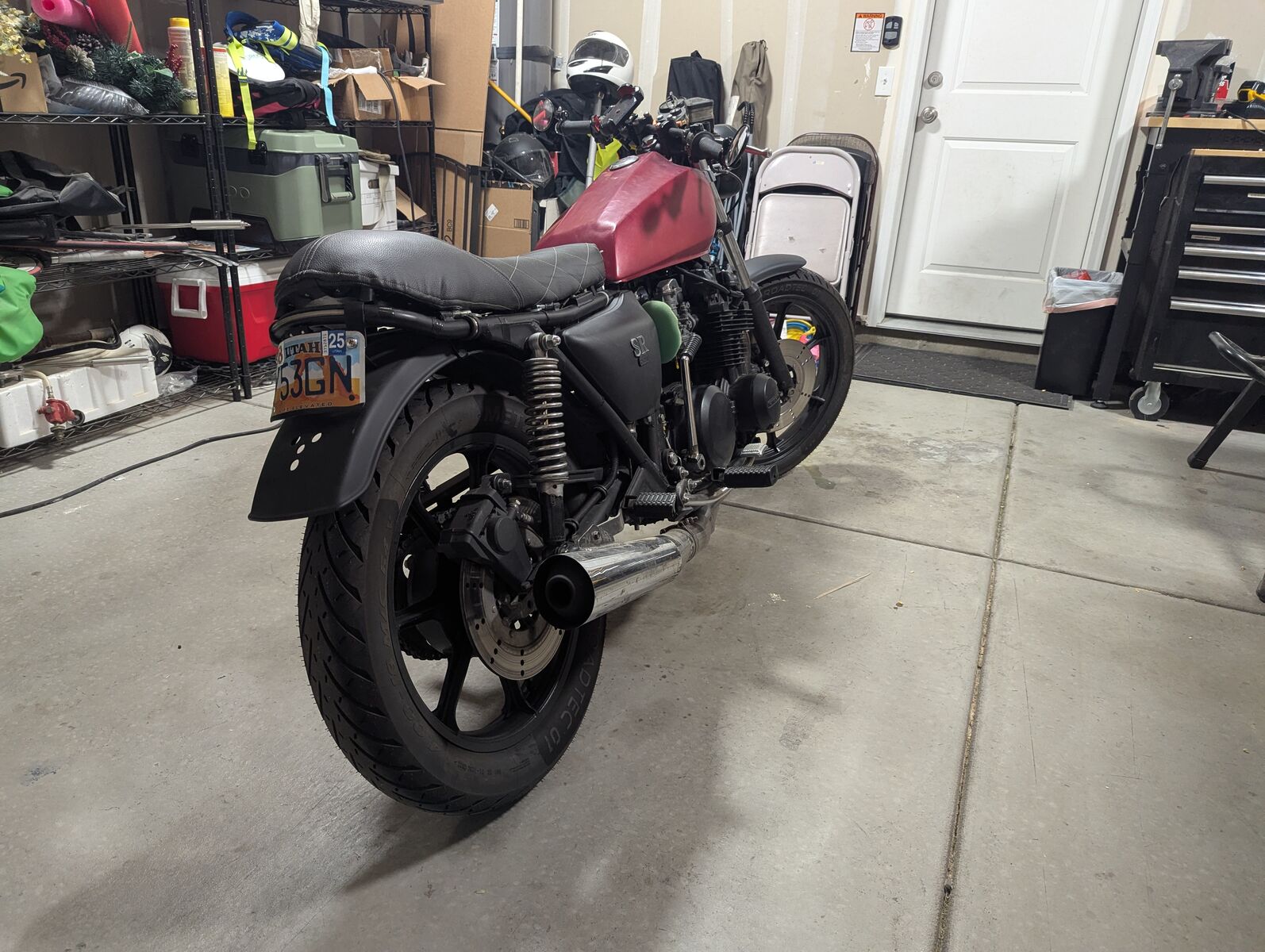 GooglePay($4500 or best offer, shoot me a message I'm open for barganin) I’m selling my 1979 Kawasaki KZ650 D2 SR – a bike I’ve lovingly restomodded over the years. It runs and rides well, and has been an absolute blast to own, and has been garage kept the whole time. While it’s not perfect (see “Issues” below), I’ve tried to preserve its original charm while upgrading all the important things for better performance and reliability. Modifications & Upgrades • Chopped and looped rear frame with integrated LED tail light • Matte black powder-coated frame • Center stand removed • Rear wheel upgraded from 16 to 18 KZ650 C3 wheel (easier tire options) • Custom minimal gauge cluster (speedo only) – tach gear included if you want to reinstall one (will need tachometer) • Racetech Gold Valve fork emulators (turns damper rods into modern cartridge forks) • Upgraded fork springs for emulator compatibility • Pushrod roller kit installed • High-performance clutch springs • Velocity stacks (replaces restrictive airbox) • KZ750 camshafts installed (better power across rev range) • Stiffer valve springs to match cam upgrade • Full LED lighting: headlight (hi/low), turn signals, taillight • Stainless allen bolts swapped throughout (no more stripped Phillips!) • Hella Supertone horn – loud and effective • Integrated bar-end mirrors and handlebar turn signals • Ceramic-coated engine, rims, and forks • Brand-new Metzeler Roadtech 01 tires (~50 miles on them) Recent Maintenance (within the last ~150-200 miles): • Full engine rebuild: o Decked head, lapped valves o Honed cylinders, new piston rings o New crank bearings, bushings, oil seals, and gaskets (including head gasket) o Polished KZ750 cams, valve clearances adjusted • New chain • New tapered steering stem bearings • New clutch friction and drive plates • Cleaned/refreshed ignition points and contacts • New ignition coils • New brake fluid and pads • New rear brake switch • New fork seals, dust covers, and fork oil • New spark plugs • New throttle cable • New swingarm bushings • New handlebar grips • Recent oil change (~10-20 miles ago) • Front and rear wheel bearings rebuilt Extras (included in the sale): • Original 16 rear rim (with old tire) • Tachometer gear (if you want to re-add a tach) • Extra unpainted clutch/chain cover (see “Issues” below) • KZ650 B3 service manual (very similar to D2 model) • Gold Valve emulator tuning guide Known Issues (see photos): • Carburetor needs tuning/re-jetting (bike runs and rides, but could perform better) • Carburetor leaks fuel • Very minor fuel tank leak • Small dents in gas tank • Paint peeling and chips on tank (due to fuel leak) • Crack in current clutch/chain cover (extra included – doesn’t affect function) • Battery works but isn’t strong enough to use the electric starter (kickstart only) • One camshaft cap bolt was helicoiled after being stripped – now stronger than original • The exhaust header has a minor dent in it. It (the exhaust, not the bike) was dropped by the previous owner • Rear peg rubbers are torn Additional Notes: • The original odometer was replaced with a smaller unit; the bike had 25,248 miles on the engine before the rebuild. Current odometer only reflects post-rebuild miles (176 at time of writing). • Custom wiring harness to support LED system Why I’m Selling: I truly love this bike, but I just don’t have the time to tinker with an older machine anymore. As much as I’ve enjoyed the project, I’ve grown tired of dealing with carburetors – too much dark magic for me. It’s time to pass it on to someone who’ll appreciate it as much as I have.