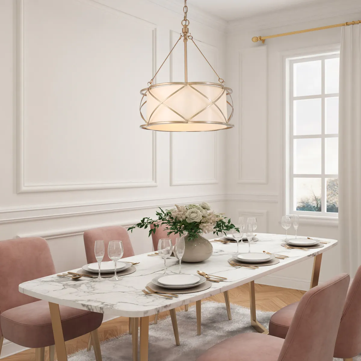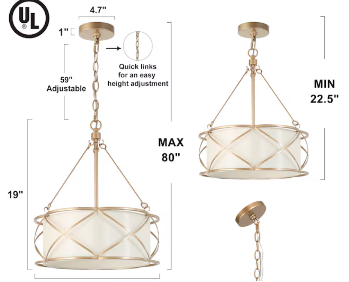3.0 -Light Polished Gold Modern/contemporary Cage For Use in Bedrooms, Dining Rooms, Foyers, Kitchens, Living Rooms Chandelier Retail 190 New in box
