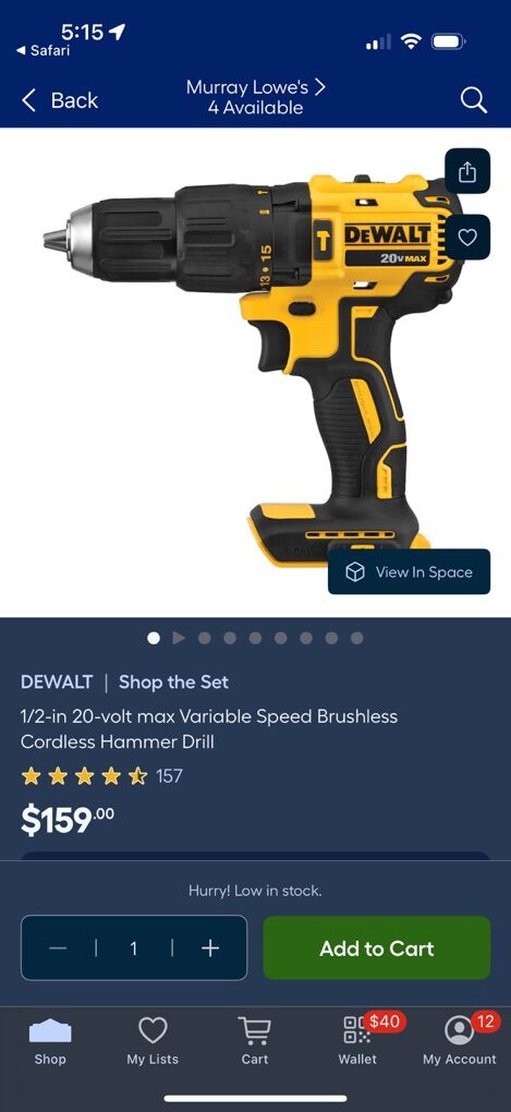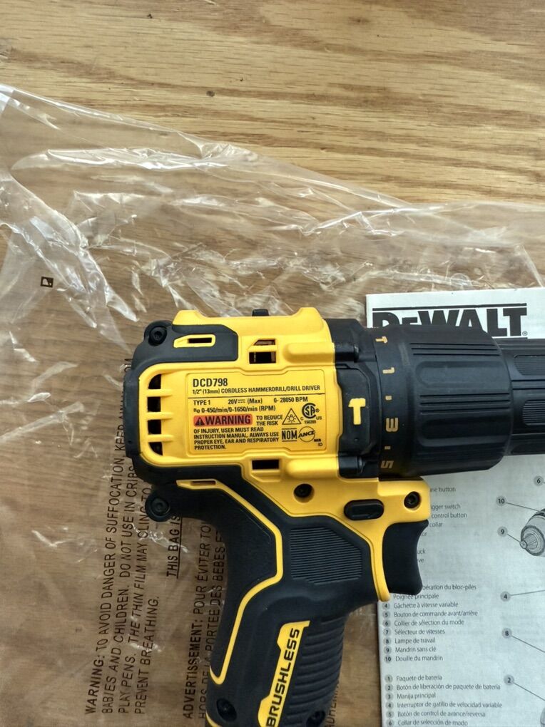 VenmoBrand new, never used. Dewalt 20v hammer drill. Brushless motor so able to get the power with less battery usage. 2 speed hammer drill. Lowes sells for $159 Model DCD798 Tool only. No battery or charger Firm on price with listing more than half off Add charger for $10, 2ah battery for $25, 4ah battery for $50