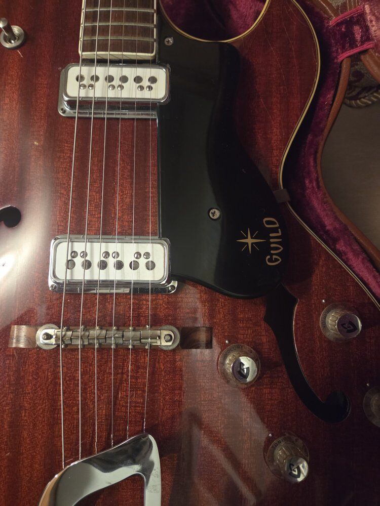 VenmoGuild Starfire ll from 1962. super clean. completely original. maybe the prettiest guitar I've ever owned, and maybe the most beautiful case I've ever owned as well. makes for an impressive package. both case and guitar are in wonderful cosmetic condition. there is a little separation at the heel on the guitar and I'm discounting the price so that this can be addressed. thanks for looking